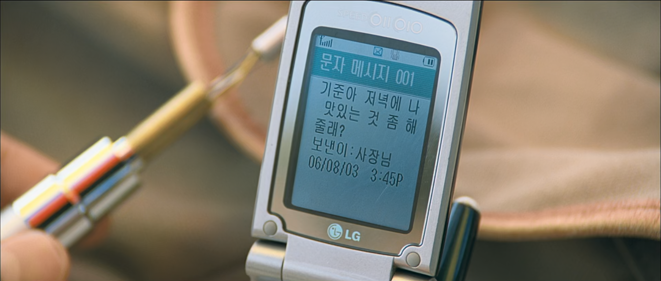 이한규: (송지원이 미행하여 자신의 통화를 도청 중이라는 사실을 모른 채, 영국에 있는 딸에게 전화한다.) 알버트가 피아노 가르쳐 줬어? 새 아빠 좋아? 아빠가 더 좋아? 생일 선물로 뭐 갖고 싶어? 디카? 그건 그쪽에도 사도 되잖아. 아빠가 돈 더 보내줄 테니까 엄마한테 사달라고 그래. (명절이라 바쁜 일도 전혀 없으면서) 아빠 바빠서 그만 끊을게.