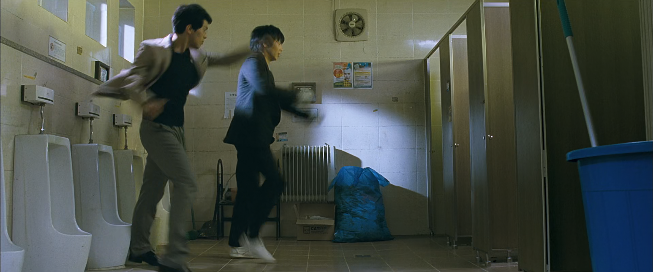 그림자: (공중화장실 문을 잠그고 송지원과 손태순 두 사람을 빤히 바라보며, 팽팽한 긴장감이 감도는 가운데 엉뚱한 제안을 한다) 춤 한번 춰봐라. 여기 아이들 유행하는 춤.