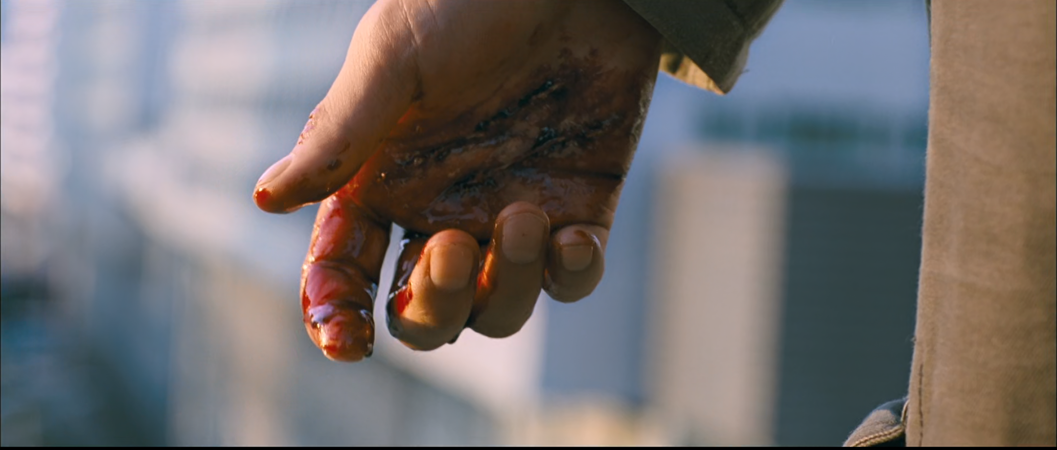 이한규의 복부에서 흐르던 피는 실은 이한규의 피가 아니라 송지원의 피였다. 송지원은 이한규의 복부를 찌르는 척하면서 남몰래 자신의 손을 찌른 것이다. 아무도 다치게 할 수 없어 스스로를 난자한 송지원. 날카로운 자상(刺傷)을 입어 선혈이 뚝뚝 흐르는 지원의 손을 바라보며 이한규는 가슴이 시리다. “미련하긴.” 지원은 아픔조차 잊은 채 가족의 안부를 걱정한다. 그림자의 암시처럼 가족들이 잘못되었다면 이젠 더 이상 살아갈 이유가 없어져버린 지원은 자신에게 총구를 겨눈 그림자를 똑바로 바라보며 죽음에 대한 공포조차 잊은 표정이다. 이한규의 총구는 그림자에게, 그림자의 총구는 송지원에게 향해 있다. 송지원은 아예 그림자의 총구를 손으로 꽉 잡은 채 차라리 자신을 죽여버리라고 절규한다. 일촉즉발의 순간. 그림자와의 몸싸움 끝에 지원은 그림자와 함께 건물 아래로 추락하고 만다.