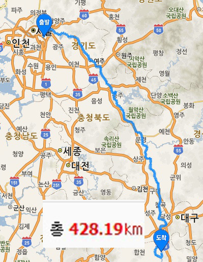1. 경로: 현풍터미널⇒올림픽공원 평화의 문(376.16Km)