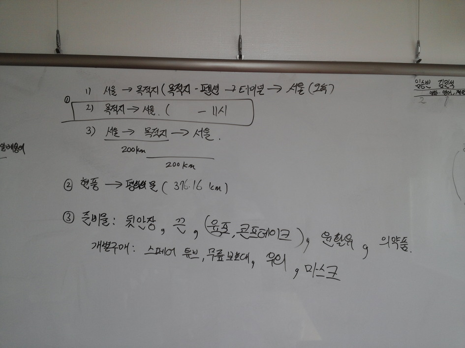 처음으로 회의한 내용은 ‘서울에서 출발하여 목적지로 갈 것인가, 다른 곳에서 시작하여 서울로 올 것인가?’하는 거였다. 이미 이에 대한 얘기가 나온 적은 있지만, 아무래도 멀리 떠나는 느낌, 그리고 점차 부산으로 가까워지는 느낌도 좋았기에 그 땐 깊게 생각하지 않았다. 그런데 다시 생각해보니 서울로 돌아오는 여행도 나름 괜찮을 것 같아 아이들의 의사를 반영하기로 했다.