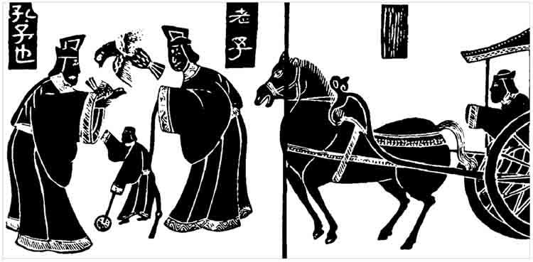▲ 공자가 노자를 만나 가르침을 받는 장면. 한(漢)대의 무량사(武梁祠) 석각(石刻)