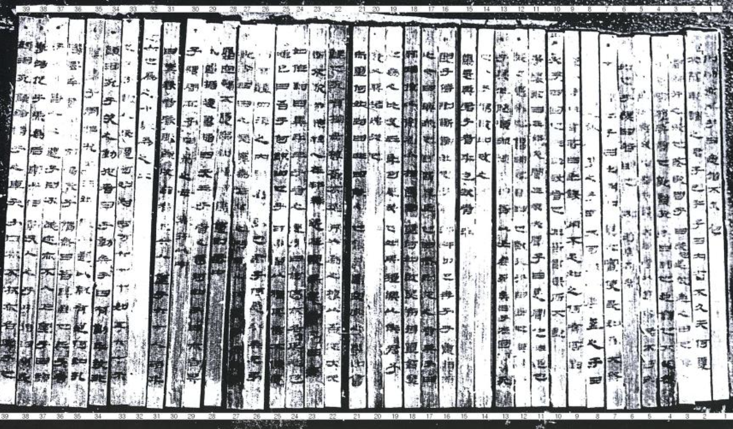 ▲ 북한이 평양시 낙랑구역 한 목관묘(木槨墓, 귀틀무덤)에서 발굴했다는 사실만을 지난 1992년에 간단히 보고한 죽간논어(竹簡論語, 대나무 조각에 쓴 논어). 2009년에 비로소 실물이 공개된 이 죽간은 논어 중에서도 선진(先進)과 안연(顔淵), 두 편을 묵서(墨書)로 적은 텍스트로, 정백동(貞柏洞) 364호분이 출토지며, 정확한 출토량은 39매로 밝혀졌다. 2009.11.29 연합뉴스