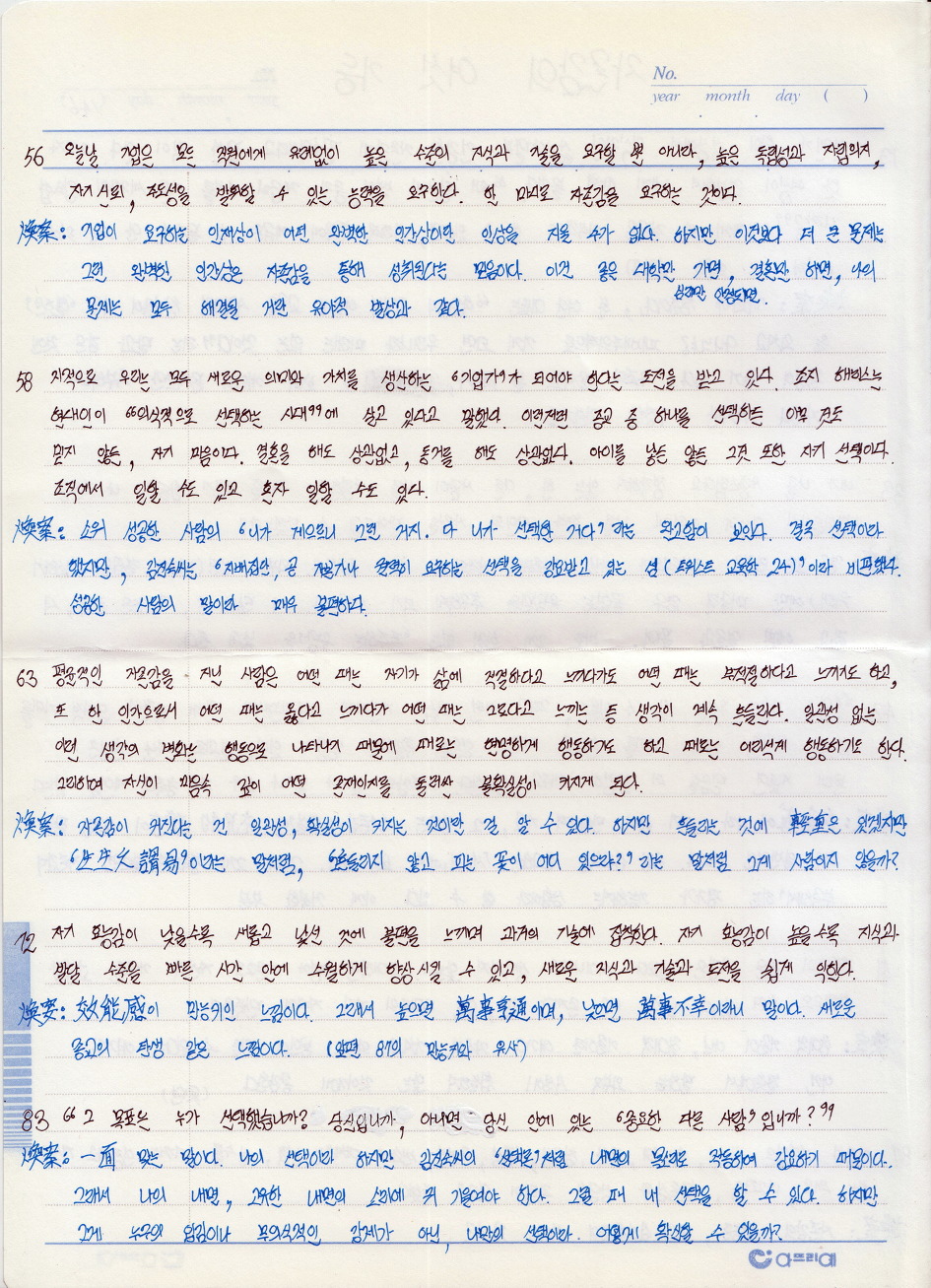 소위 성공한 사람의 ‘니가 게으르니 그런 거지. 다 니가 선택한 거다’라는 완고함이 보인다. 결국 선택이라 했지만, 김진숙씨는 ‘지배집단, 곧 자본가나 권력이 요구하는 선택을 강요받고 있는 셈(트위스트 교육학 49)’이라 비판했다. 성공한 사람의 말이라 매우 불편하다.