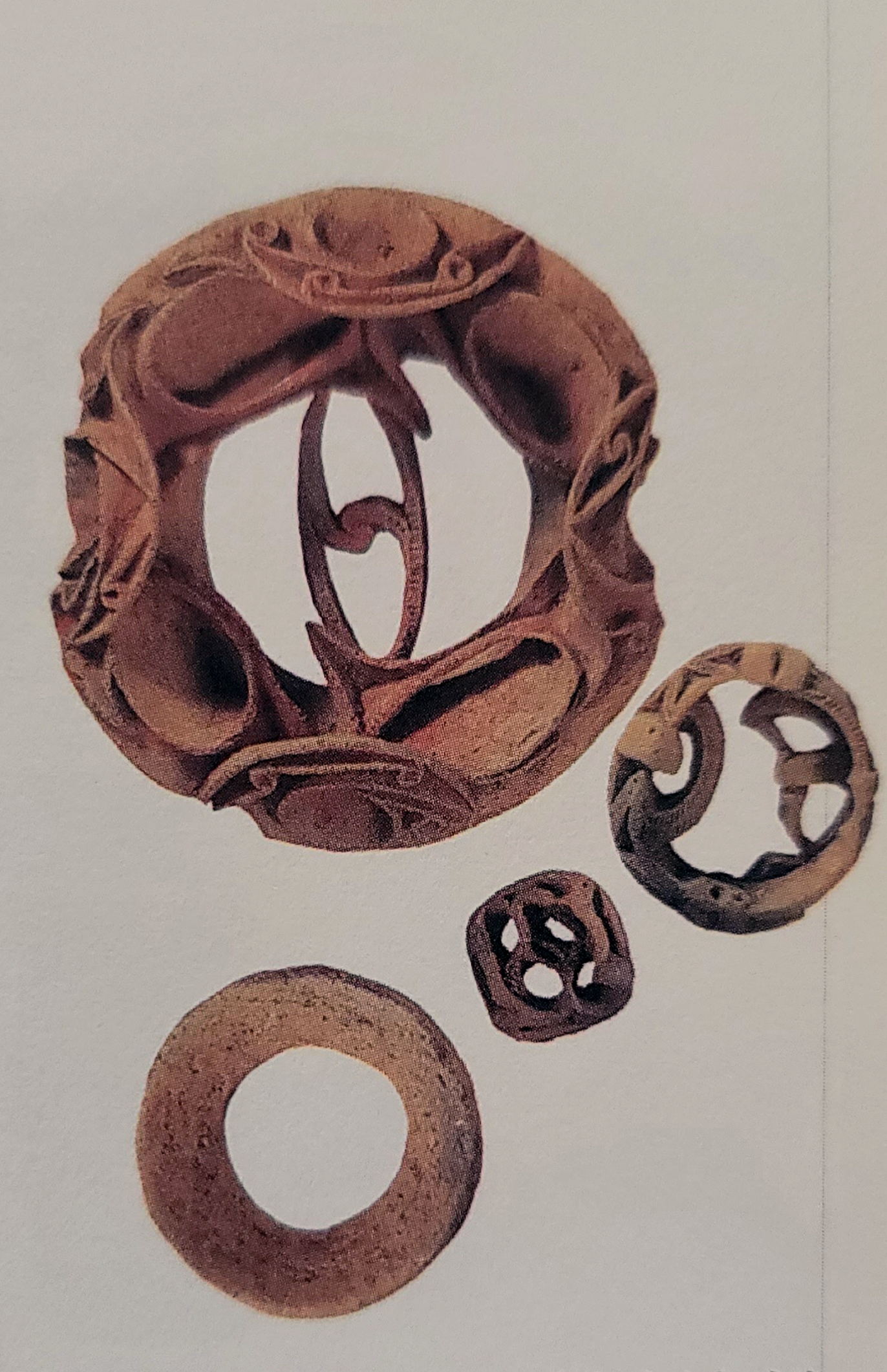 ▲ 흙으로 만든 장신구. 조몬 시대 말기인 기원 전 500년 무렵의 귀고리다. 이처럼 작은 물건들까지도 흙으로 정교하게 가공한 것을 보면 대륙 문화와 교류 없이 자생적으로 발달한 조몬 문화도 상당한 수준에 이르렀음을 알 수 있다.