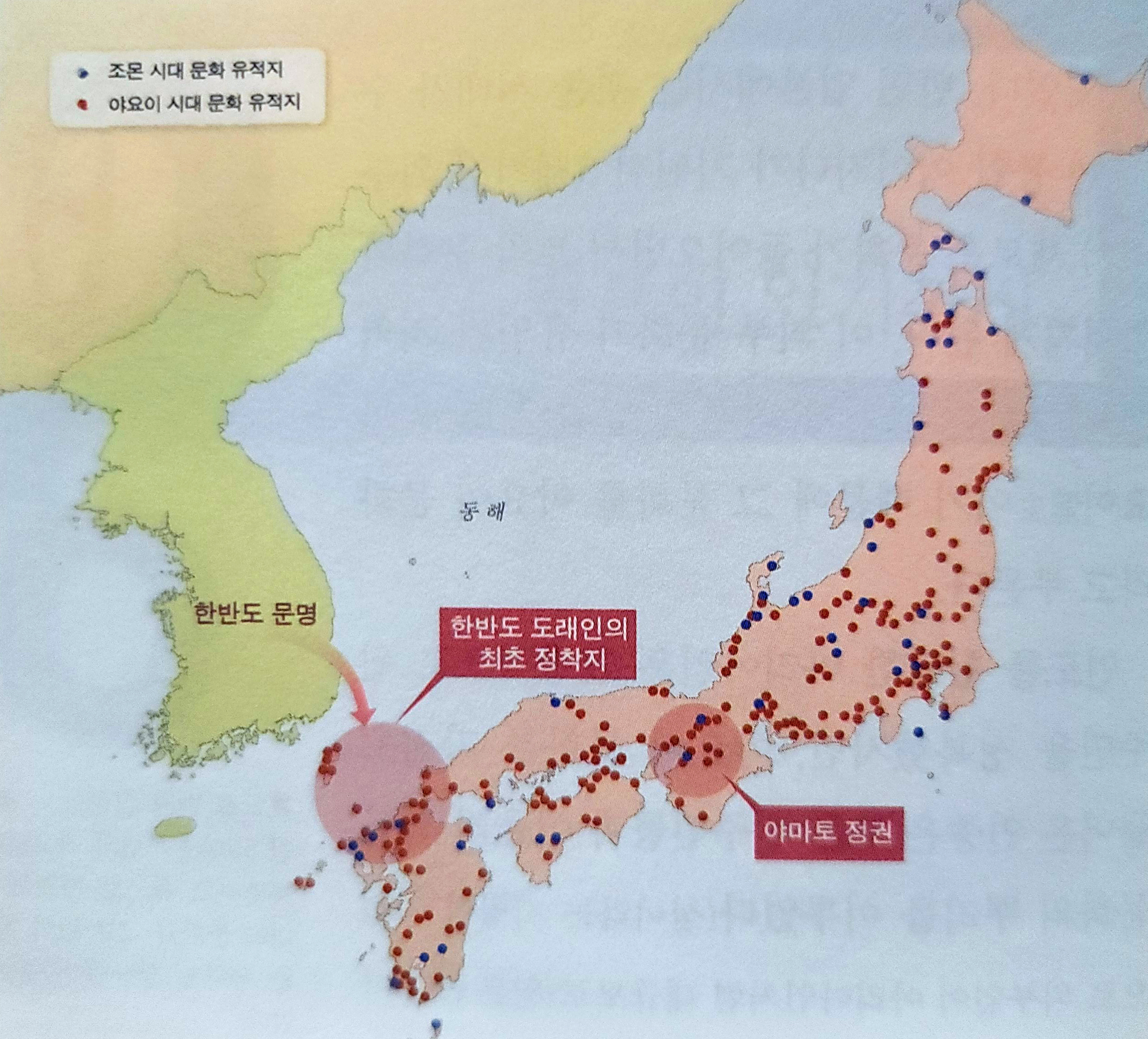 거의 원시적인 수준의 조몬인들에게 생활의 안정과 함께 금속의 빛을 던져준 야요이인들은 과연 누구였을까? 일본의 지도를 보면 충분히 추측할 수 있다. 그들은 대륙과 한반도에 가장 가까운 지역인 지금의 기타큐슈(北九州)에 처음으로 정착했다. 그곳에 쉽게 갈 수 있는 외부인이라면 한반도인밖에 없다. 야요이인은 바로 변한(지금의 경상남도와 전라남도에 걸친 지역)에 자리 잡고 있던 한반도인이었다.