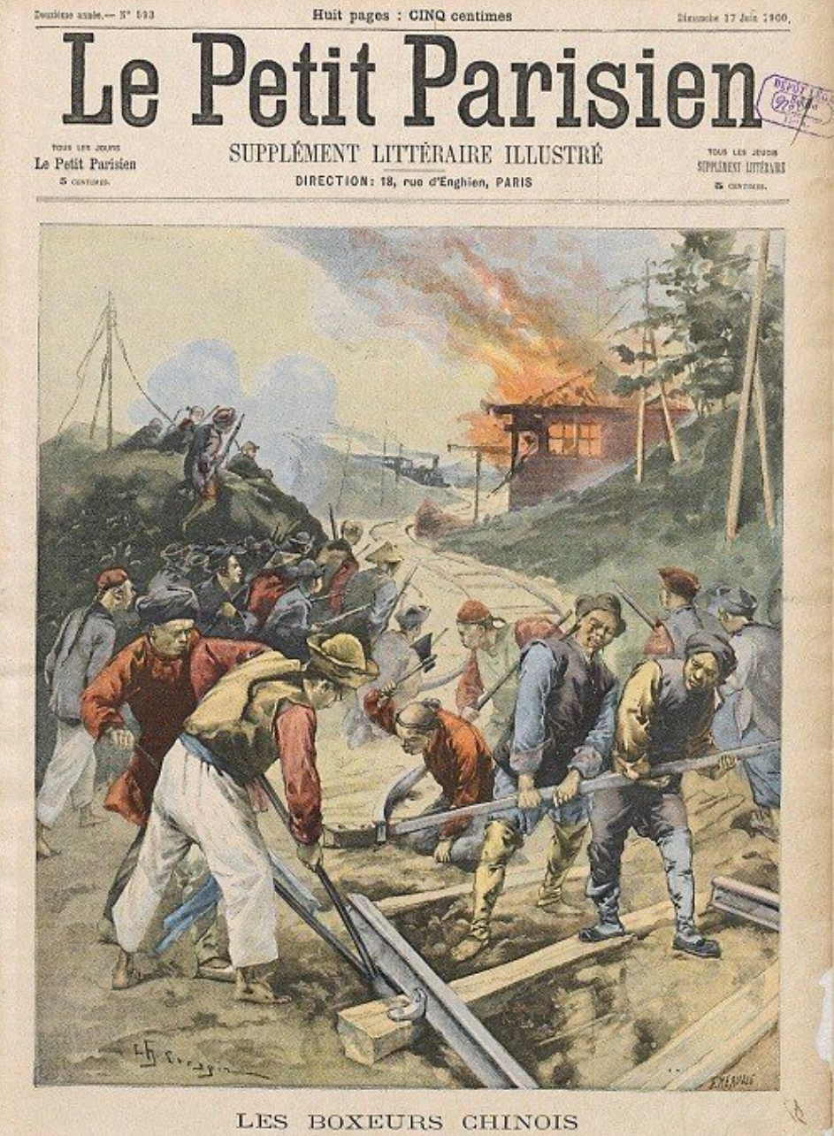 ▲ 철도를 파괴하는 의화단 개혁이 실패하면 보수로 기우는 법이다. 양무운동과 무술변법이 모두 실패하자 이제 중국은 오로지 반외세로 나아갈 수밖에 없었다. 그러나 의화단운동은 중국 민중이 들고일어났다는 점에서 달랐다. 그들은 서양의 철도와 그리스도교가 재앙을 불러왔다고 여기고 곳곳에서 철도와 교회를 파괴했다. 그림은 프랑스 신문 「르 프티 파리지엔」에 실린 것이다.