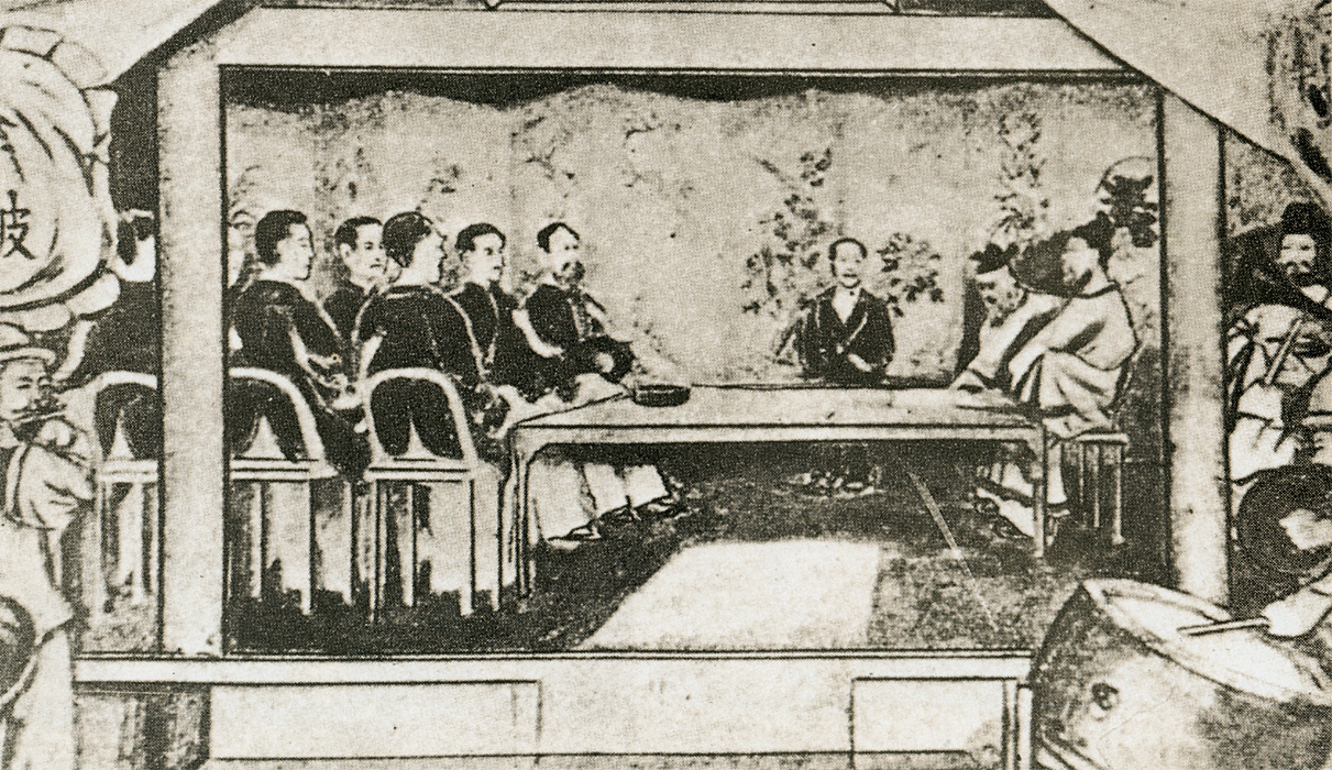 그 첫걸음은 1871년에 청과 맺은 수호통상 조약이다. 그 내용은 그리 중요하지 않지만 이 조약은 유사 이래 최초로 일본과 중국이 대등한 입장에서 맺은 외교 관계라는 점에서 작지만 커다란 한 걸음이었다. 일본이 중국과 대등한 조건에서 조약을 체결한 직접적인 성과는 바로 조선에 진출하기에 유리해졌다는 점이다.