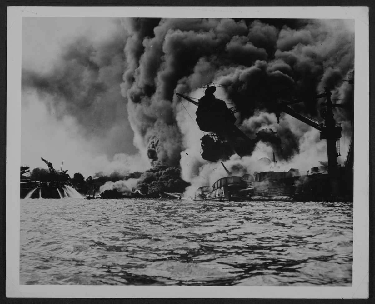 ▲ 진주만 기습 일본이 일으킨 전쟁에는 선전포고라는 게 없다. 1942년 12월 7일, 일본 공군은 아무런 예고도 없이 하와이의 진주만을 기습했다. 사진은 미국 전함 테네시호가 화염에 휩싸인 채 침몰하는 모습이다.