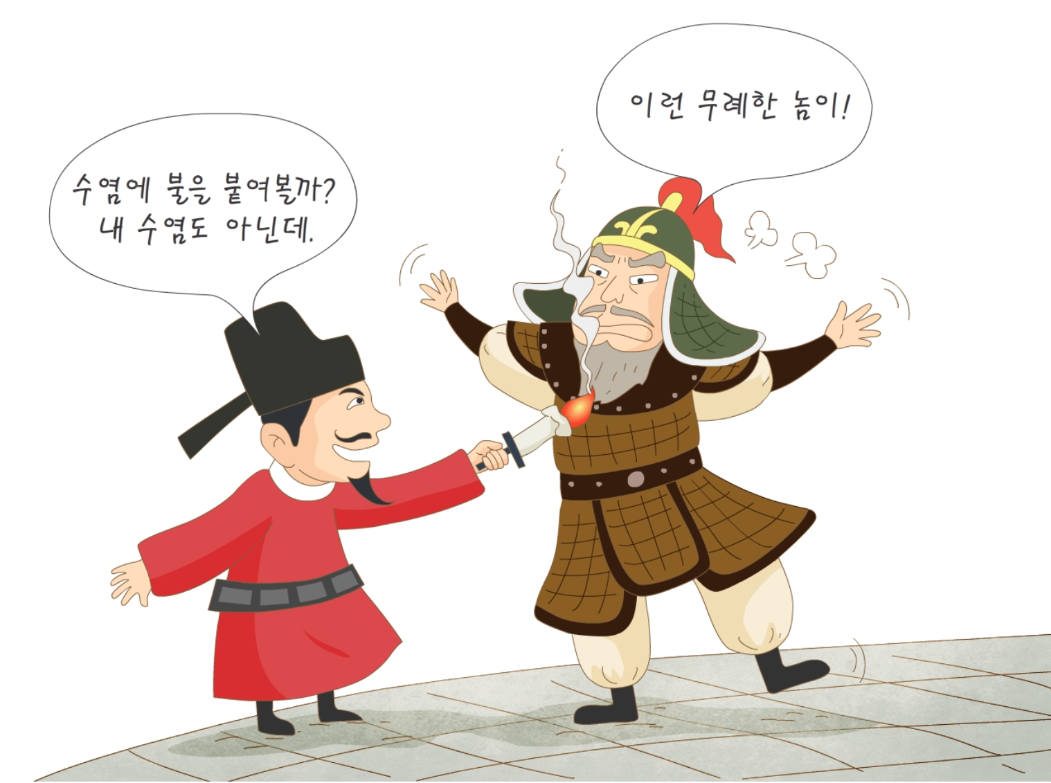 왕과 군신의 행차에 호위 병력이 없을 수 없다. 전쟁과 내전의 시대가 지나자 군대의 가장 주요한 임무가 그런 행사를 호위하는 정도에 불과했다. 그 런데 일행이 나들이의 중간 휴식처인 흥왕사를 향할 즈음, 그렇잖아도 손대면 터질 것만 같은 군인들의 가슴에 불을 지르는 사건이 터졌다. 의종의 명으로 호위병들은 수박(手搏, 태껸과 비슷한 전통 무예인데 태껸이 주로 발을 쓰는 데 비해 수박은 손을 쓴다) 시범을 보였는데, 여기서 그만 예순 살의 노장 이소응(李紹膺, 1111~80)이 젊은 병사와 겨루다가 넘어지는 모습을 보고 한뢰(韓賴)라는 젊은 문신이 그의 뺨을 치며 놀려댄 것이다. 일단 분을 참고 흥왕사에 도착한 호위대장 정중부(鄭仲夫, 1106~79)는 즉각 이의방(李義方, ?~1174), 이고(李高, ?~1171) 등의 부하들을 불러 거사를 지시했다【사실 정중부는 개인적으로도 이미 오래 전부터 문신들의 처사에 대해 원한을 품고 있었다. 천민 출신으로 오로지 자신의 힘으로만 군직에서 성공한 그는 인종때 김돈중(金敦中)이라는 젊은 문신에게서 수염을 촛불에 그을리는 수모를 당한 일이 있었던 것이다. 당시 삼십대 후반이었던 정중부는 참지 못하고 김돈중을 기둥에 묶어놓고 겁을 주었는데, 오히려 그 사건으로 꾸지람만 듣는다. 그도 그럴 것이 김돈중은 인종조차 함부로 대하지 못하는 당대 최고 실력자인 김부식(金富軾)의 아들이었던 것이다. 인종의 중재로 벌은 간신히 면했으나 정중부로서는 결코 잊지 못할 치욕이었다. 1167년에도 김돈중은 의종이 행차할 때 한 호위병의 화살이 잘못해서 왕이 탄 수레에 맞는 사건이 일어나자 길길이 날뛰어 많은 무신들을 귀양보낸 일이 있었다. 이래저래 무신들에게 미운 털이 박힌 그는 결국 1170년 무신난이 일어나자 도망치다가 잡혀 죽었는데, “나 때문에 여러 사람이 화를 당했으니 나의 죽음은 당연하다”는 말을 남겼다】.
