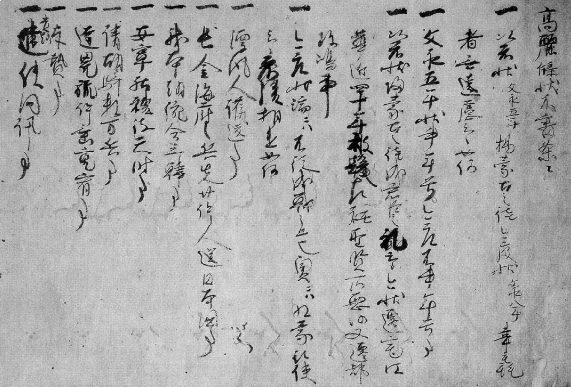 ▲ 고려 정부를 자처한 삼별초 삼별초가 일본에 보낸 문서다. 성격은 반란군이지만 삼별초는 고려 민중의 지지를 얻어 대몽 항쟁의 주체가 되었고, 대외적으로도 고려 정부로 자칭했다.