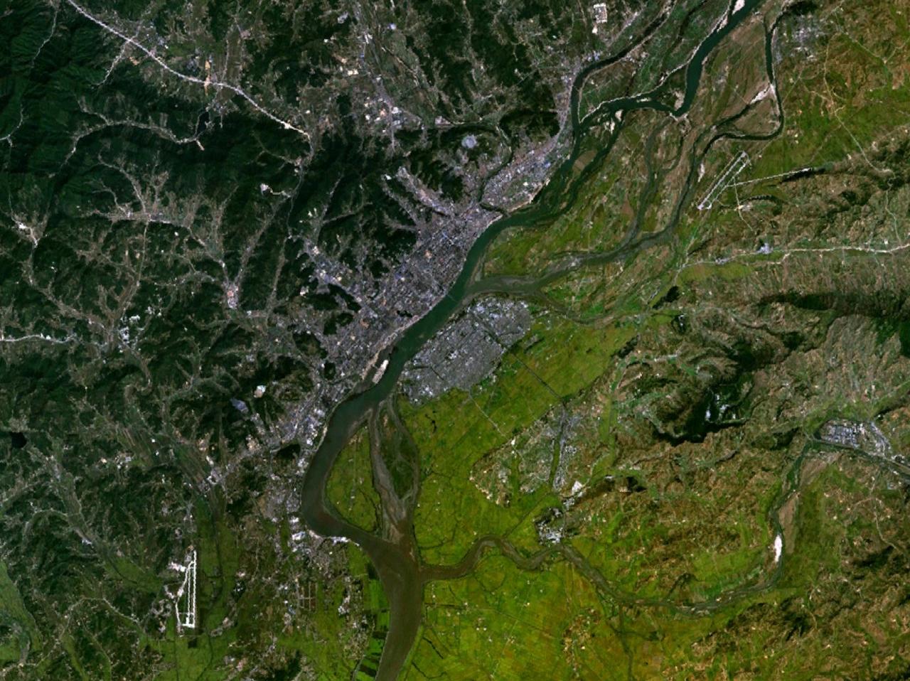 ▲ 역사를 결정한 섬 위화도는 압록강 하구의 작은 섬인데, 현재 북한의 영토다. 강을 마저 건너면 랴오둥이고 말머리를 돌려 강을 되건너면 조선이었으니 이성계가 고민하기에는 적절한 장소다. 섬의 면적으로 보면 아마 이성계와 조민수는 전군을 강 뒤편에 둔 채 수뇌부만 이 섬으로 와서 대책을 숙의했을 것이다. 위 지도에 붉게 표시된 부분이 위화도이고, 아래 사진은 오늘날 위화도의 모습이다.