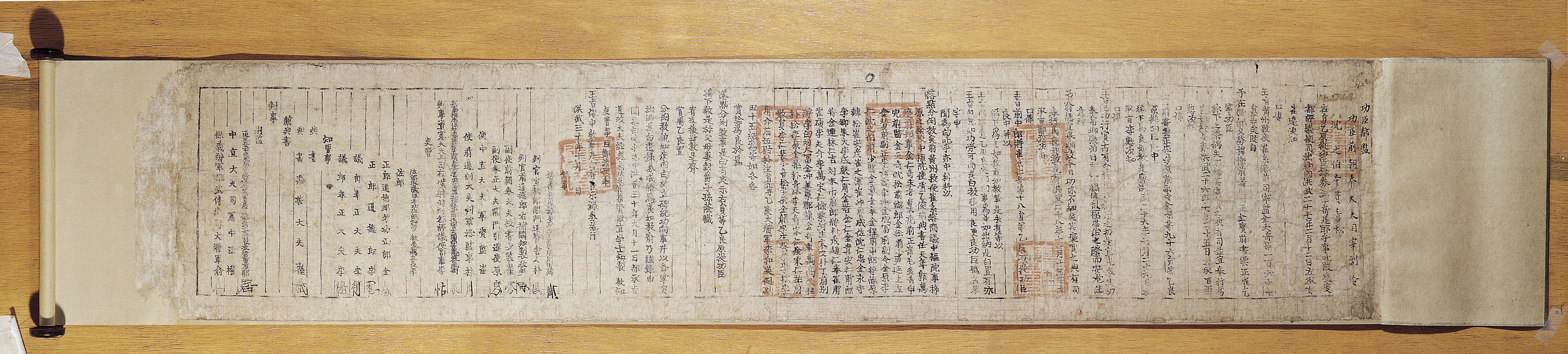 ▲ 심지백 개국원종공신녹권(沈之伯 開國原從功臣錄券): 공신녹권은 왕조의 창업이나 국가적 중대사에 직·간접으로 공을 세운 신하들에게 발급된 공신증명서이다. 개국원종공신이란 개국 의거에 직접 참여하지 못했으나 잠저 때부터 신변을 지켜주고 대업을 적극 권고한 공로가 있는 신하를 말한다. 개국원종공신녹권은 태조 원년(1392) 10월부터 6년(1397) 12월까지 여러 차례에 걸쳐 1,400여 명에게 발급하였고, 그 중 하나가 이 심지백 개국원종공신녹권이다. 심지백 개국원종공신녹권은 태조 6년 10월 공신도감에서 전 조봉대부 사재부령 심지백에게 발급한 것으로 이 녹권에는 심지백을 포함하여 모두 75명의 원종공신의 이름이 쓰여 있고, 이들 각 공신에게 전 15결을 상으로 내린 것을 알 수 있다. 아울러 부모와 처에게 벼슬을 내리고, 자손에게는 음직을 내렸다고 전한다. 이러한 사실은 태조실록에도 기록되지 않아 이 녹권을 통해 비로소 확인할 수 있다. 현전하는 대부분의 개국원종공신녹권은 필사본인데 비해 심지백 개국원종공신녹권은 목활자인쇄본이라 인쇄문화사적으로도 가치가 높다.