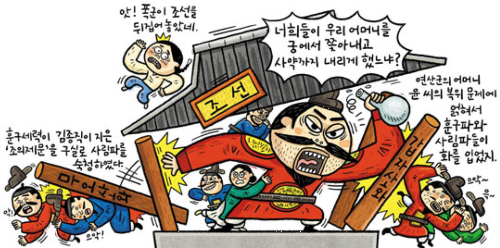 무오사화(戊午士禍)는 연산군(燕山君)의 가슴 속에 품은 폭탄을 터뜨린 게 아니라 뇌관만 겨우 건드렸을 뿐이다. 그에게는 아직 풀지 못한 한이 있다. 그것은 바로 비명에 죽어간 그의 생모와 관련된 한이다. 포악하고 무도한 이상성격에다 출생의 비밀이 어우러졌다. 전형적인 3류 드라마의 주제다. 불행히도 그 드라마가 연극 무대가 아닌 현실의 무대에서 상연되면서 조선은 3류 국가로 전락하게 된다.