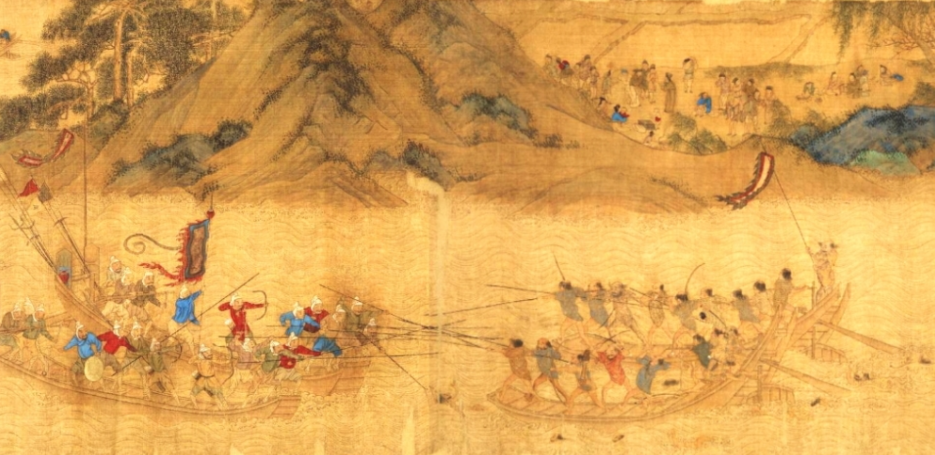 ▲ 왜구가 보내는 신호 위의 그림은 왜구(오른쪽)가 명군(왼쪽)과 싸우는 모습[도쿄대 소장]. 오른쪽의 왜구들이 중국 동해안을 침략하는 그림이다. 예부터 동아시아의 해상을 돌아다니며 중국과 한반도의 해안지대를 노략질하던 왜구들은 15세기 중반부터 일본 열도가 내전의 소용돌이에 휘말리면서 더욱 기승을 부렸다. 이는 장차 통일을 이루고 나서 일본이 대외 진출에 나서리라는 신호탄이었으나 조선의 집권 사대부(士大夫)들은 이런 변화를 눈치채지 못하고 왜구의 침략에 대해 미봉책으로 일관했다.