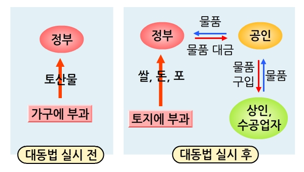 그런 사정 때문에 균역법(均役法)은 우선 군포의 양을 줄이는 조치로 실시한다. 16개월에 베 두 필씩 바치던 것을 한 필로 대폭 삭감한 것이다【영조(英祖)가 균역법을 시행한 것은 물론 그런 군정(軍政)의 문란을 바로잡기 위한 의도였지만, 때마침 개혁을 위한 배경도 형성되어 있었기 때문이다. 숙종(肅宗) 때 대동법이 전국적으로 실시되기 시작했고 양전사업이 완성된 게 그것이다. 대동법(大同法)에 따라 모든 조세가 대동미라는 단일한 형식으로 통일된 덕분에 국가에서 조세의 총량을 계산하고 예산을 집행하는 작업이 쉬워졌으며, 양전이 완료된 덕분에 매년 국가의 세 수입을 어느 정도 정확하게 예측할 수 있게 되었다. 이렇게 보면 사실 조선은 18세기 초에 이르러서야 비로소 왕국으로 발돋움할 수 있는 사회경제적 조건을 갖추게 된 것인지도 모른다】. 이로 인한 군사 재정의 손실분은 구조조정으로 커버한다. 즉 불필요한 군대를 축소하고, 중복된 군사 기지들을 통합하며, 과다한 지출을 절약하는 방식이다. 그래도 메우지 못한 부분은 다른 재정에서 일부 충당하고, 각 지방 관청에게도 손실분을 분담하도록 한다. 이런 조치들이 추진되면서 균역법의 취지(역의 부담을 고르게 한다는 것)가 어느 정도 실현되었다.