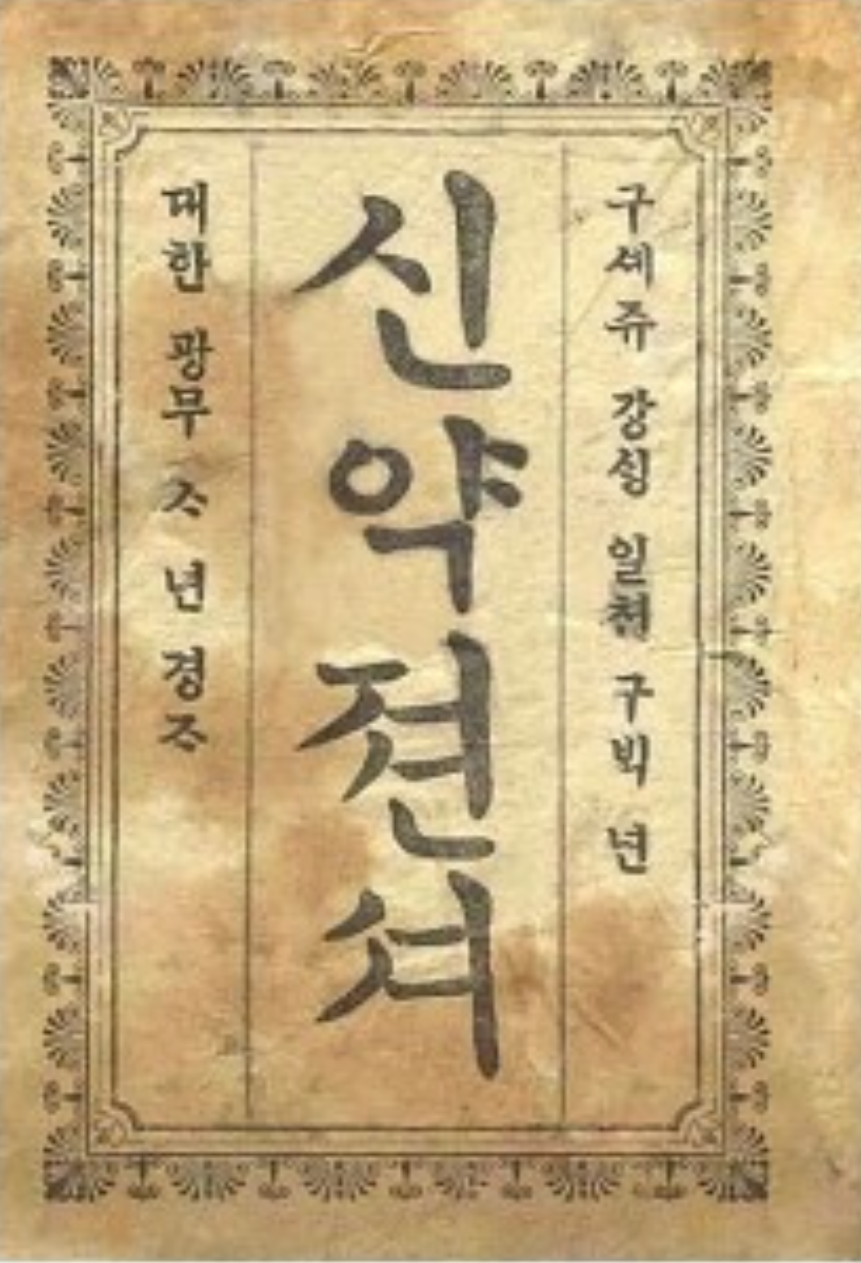 ▲ 최초의 성서 1900년에 간행된 한반도 최초의 『신약성서』다. 그리스도교는 정조(正祖)의 시대에 처음 들어왔고 정약종 등에 의해 성서의 일부가 번역되었으나 당시까지는 4대 복음서밖에 전해지지 않았을 것으로 추측된다. 그렇다면 『천주실의』와 복음서만으로 새 종교가 뿌리를 내린 셈이니, 이미 조선에 기복신앙이 만연해 있지 않다면 불가능한 이야기다.