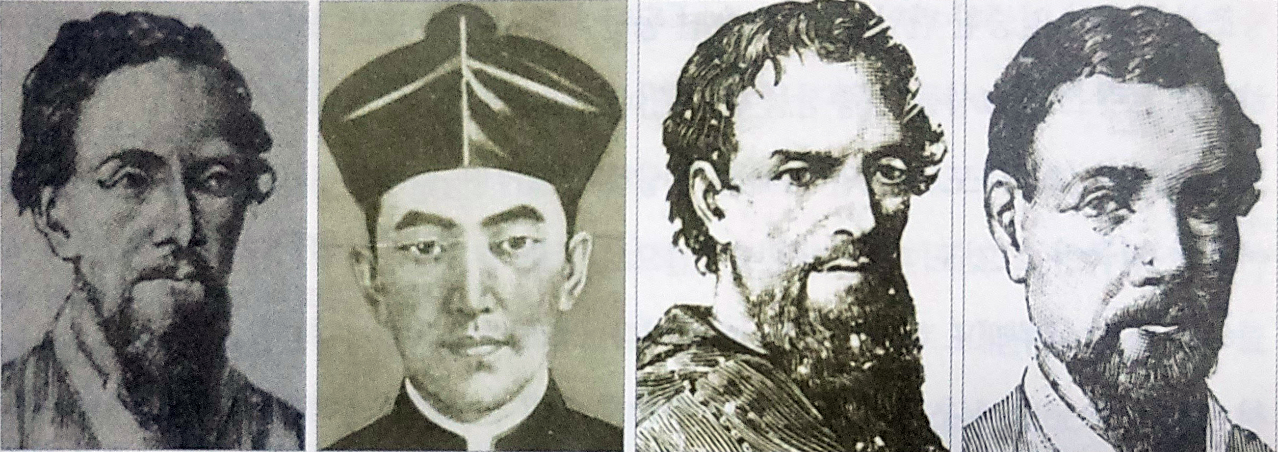 ▲ 네 명의 사제 왼쪽 두 사람은 조선에 처음으로 온 서양인 신부인 모방과 그의 전도로 최초의 조선인 신부가 된 김대건이고, 오른쪽 두 사람은 앵베르 주교와 샤스탕 신부다. 서양인 사제 세 사람이 모두 프랑스인이었으므로 이들이 한꺼번에 처형당한 사건은 외교 문제가 될 게 뻔했지만, 국제관계의 경험이 전무한 조선 정부는 그런 점을 전혀 걱정하지 않고 일을 저질렀다.
