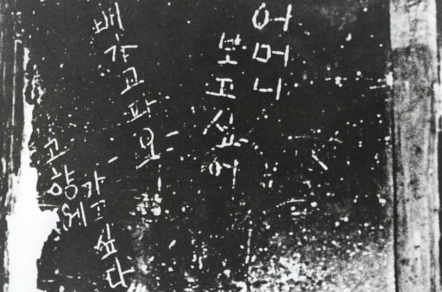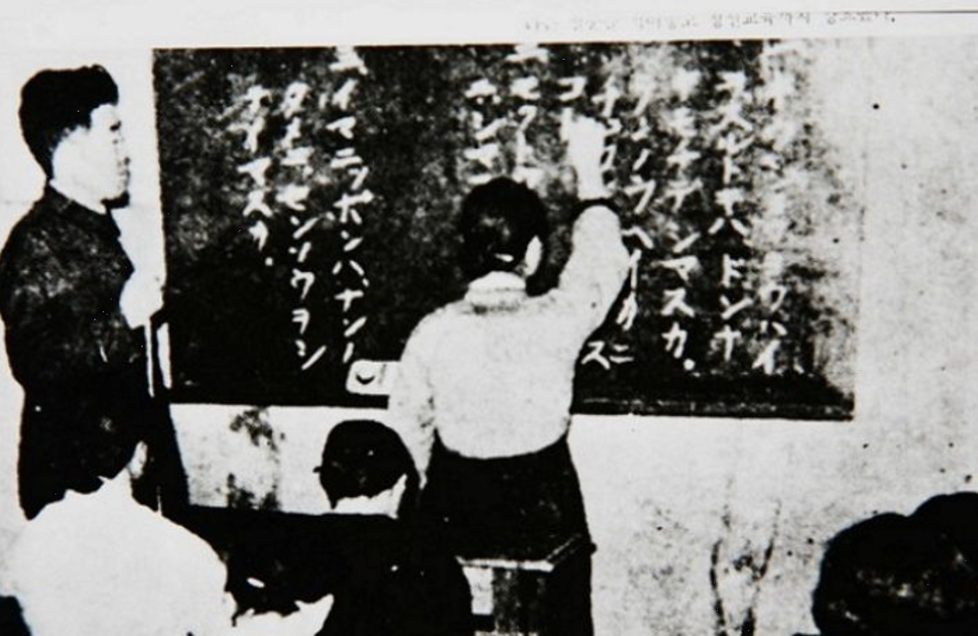 ▲ 글과 말을 잊어라 이름을 바꾸게 하고 조선어를 쓰는 것마저 금지할 정도라면 일본이 직전 얼마나 말기적 증상을 보였는지 짐작할 만하다. 사진은 학교에서 학부모에게 일본어를 교육하는 장면인데, 그밖에도 학생들을 시켜 집에서 부모에게 일본어를 가르치게 하기도 했다.