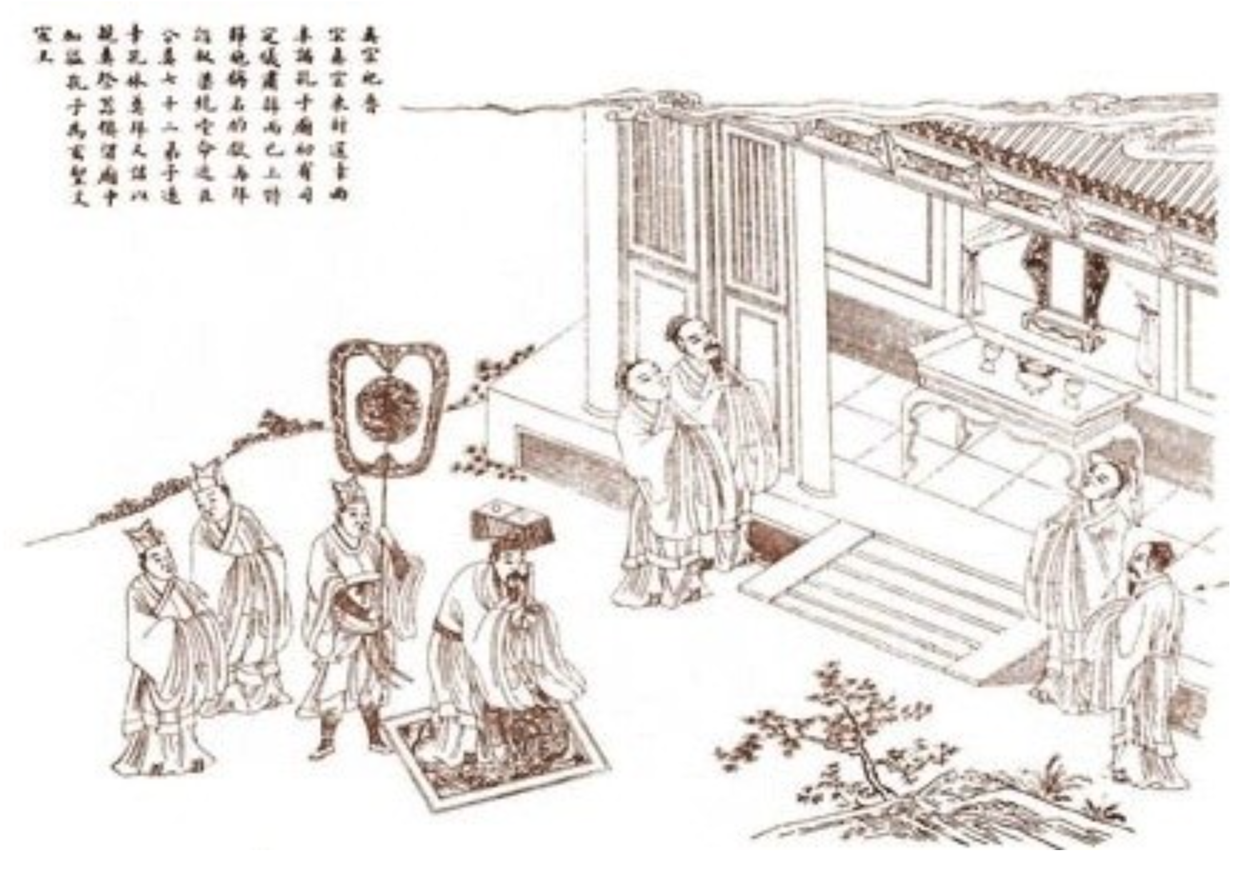 ◇ 노(魯)나라에 내조(來朝)한 담(郯)나라(현재, 산동 담성의 서남쪽에 위치)의 후(侯) 담자(郯子【담(郯)나라 군주인 자작(子爵)이라는 뜻이다. 춘추 시대 노(魯)나라 소공(昭公) 때 그가 노나라에 조현(朝見)하러 와서 관직을 새의 이름으로 명명한 이유에 대한 질문을 받고는, 자신의 먼 조상인 소호씨(少皞氏)의 행적을 거론하며 자세히 설명하였는데, 이 말을 듣고 공자(孔子)가 그를 찾아가서 배운 뒤에 “내가 듣건대, 천자의 관직이 정당함을 잃었을 때에는 사방의 이민족에게 배울 수도 있다고 하였는데, 이 말은 역시 신빙성이 있어 보인다[吾聞之 天子失官 學在四夷 猶信].”라고 평한 고사가 전한다. 『춘추좌씨전(春秋左氏傳)』 「소공(昭公)」17年】)에게 고대의 관직제도를 배움.