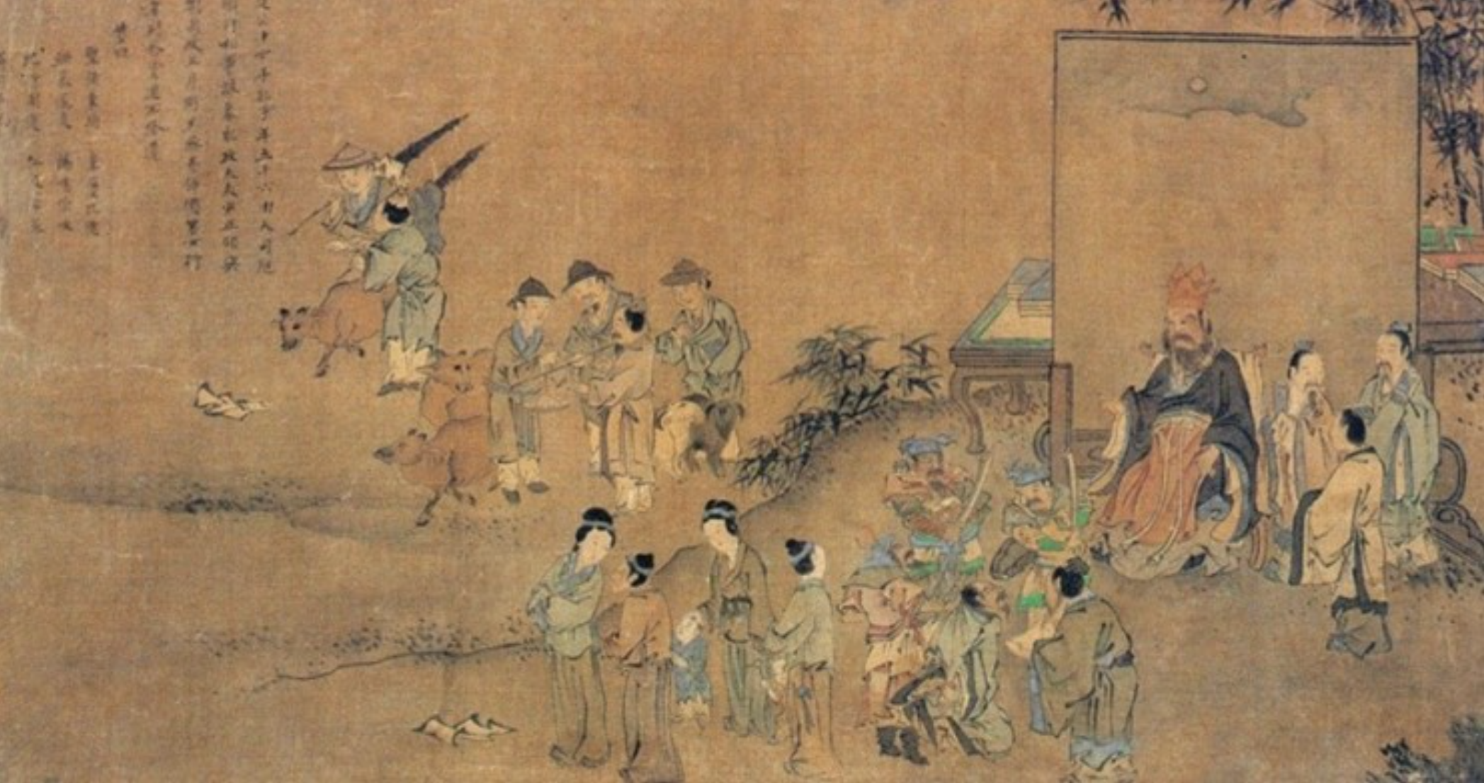 孔子的母親顔徵在, 在尼丘山上祈禱后, 生下兒子孔子.