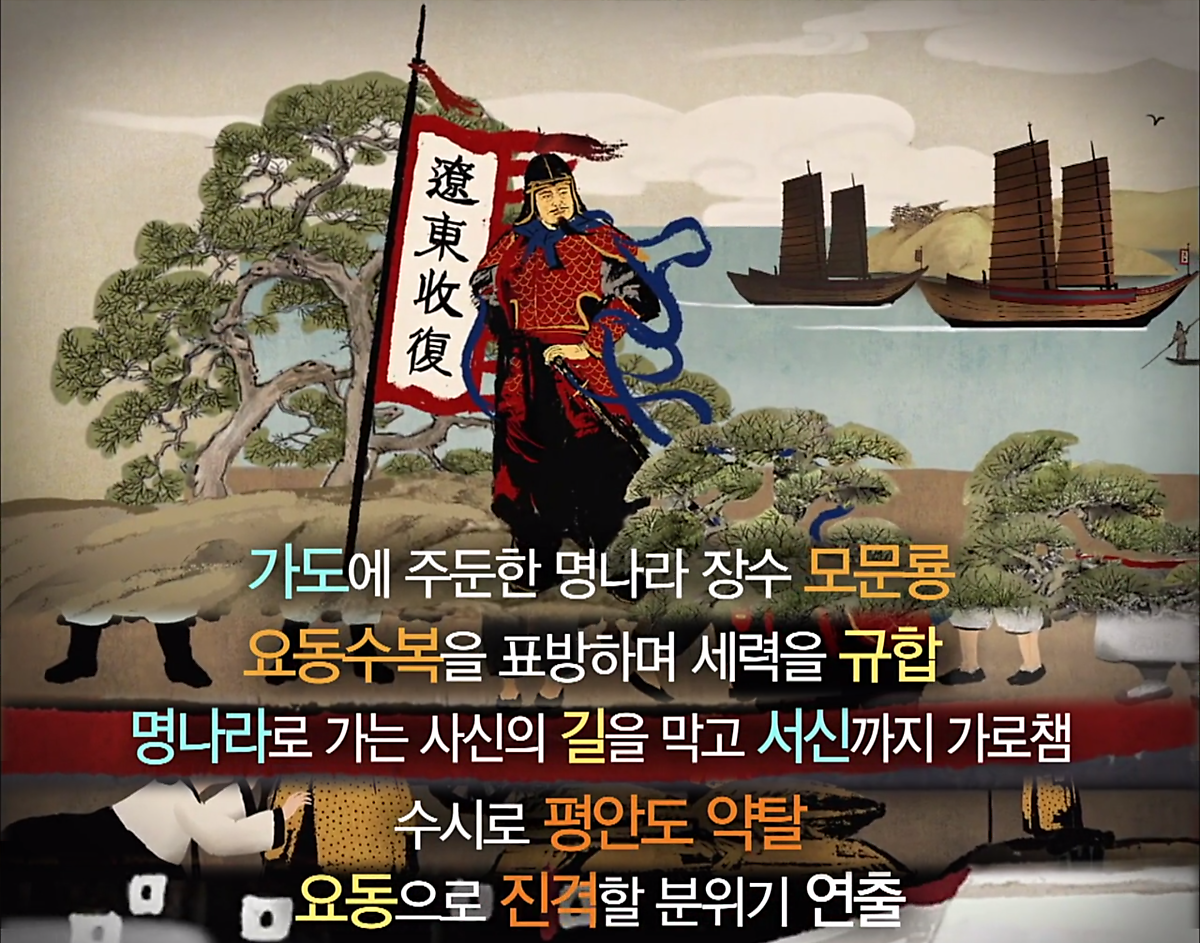 | 椵島聞有毛都督 | 가도엔 모도독이 있다고 알려졌어요. |