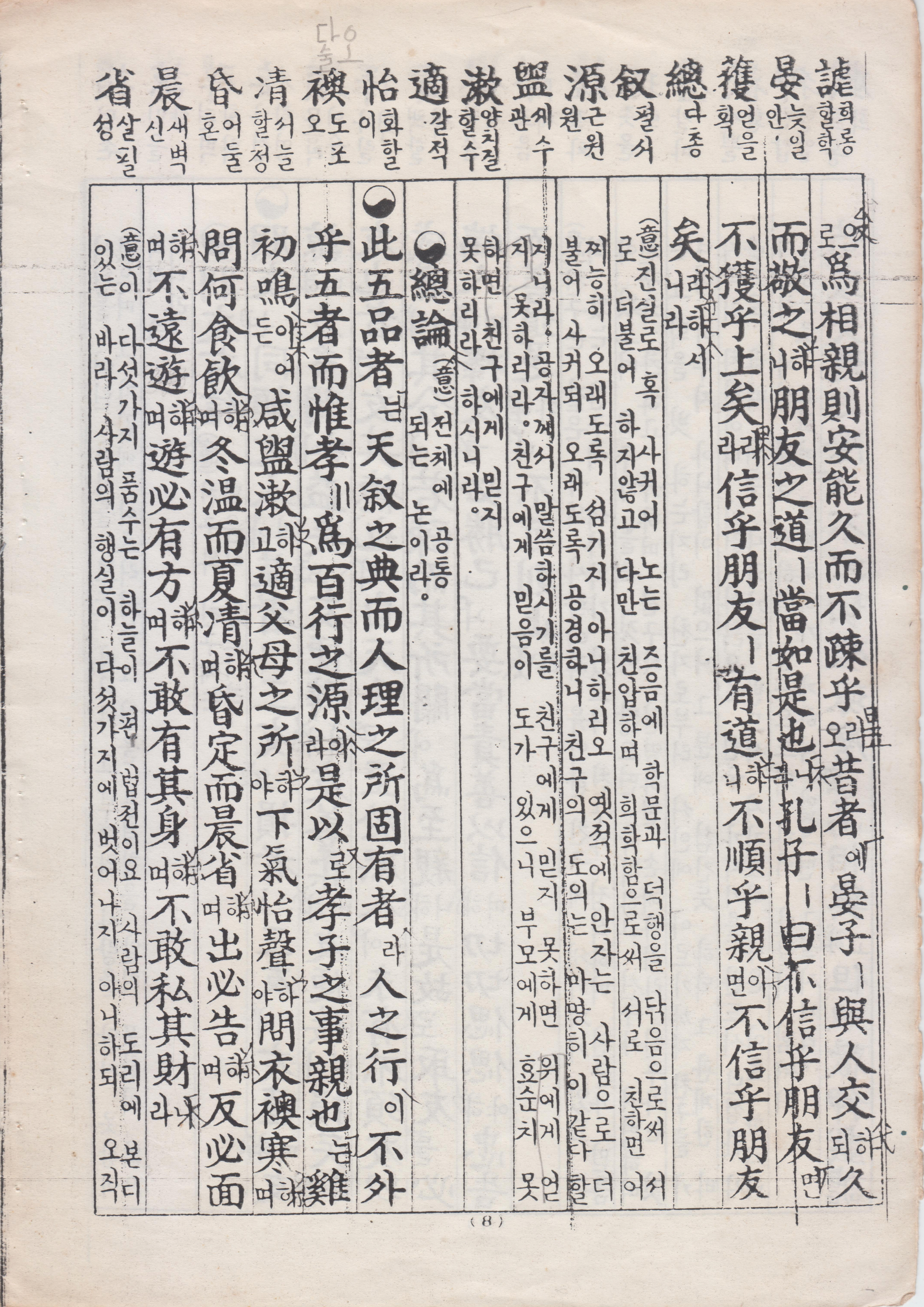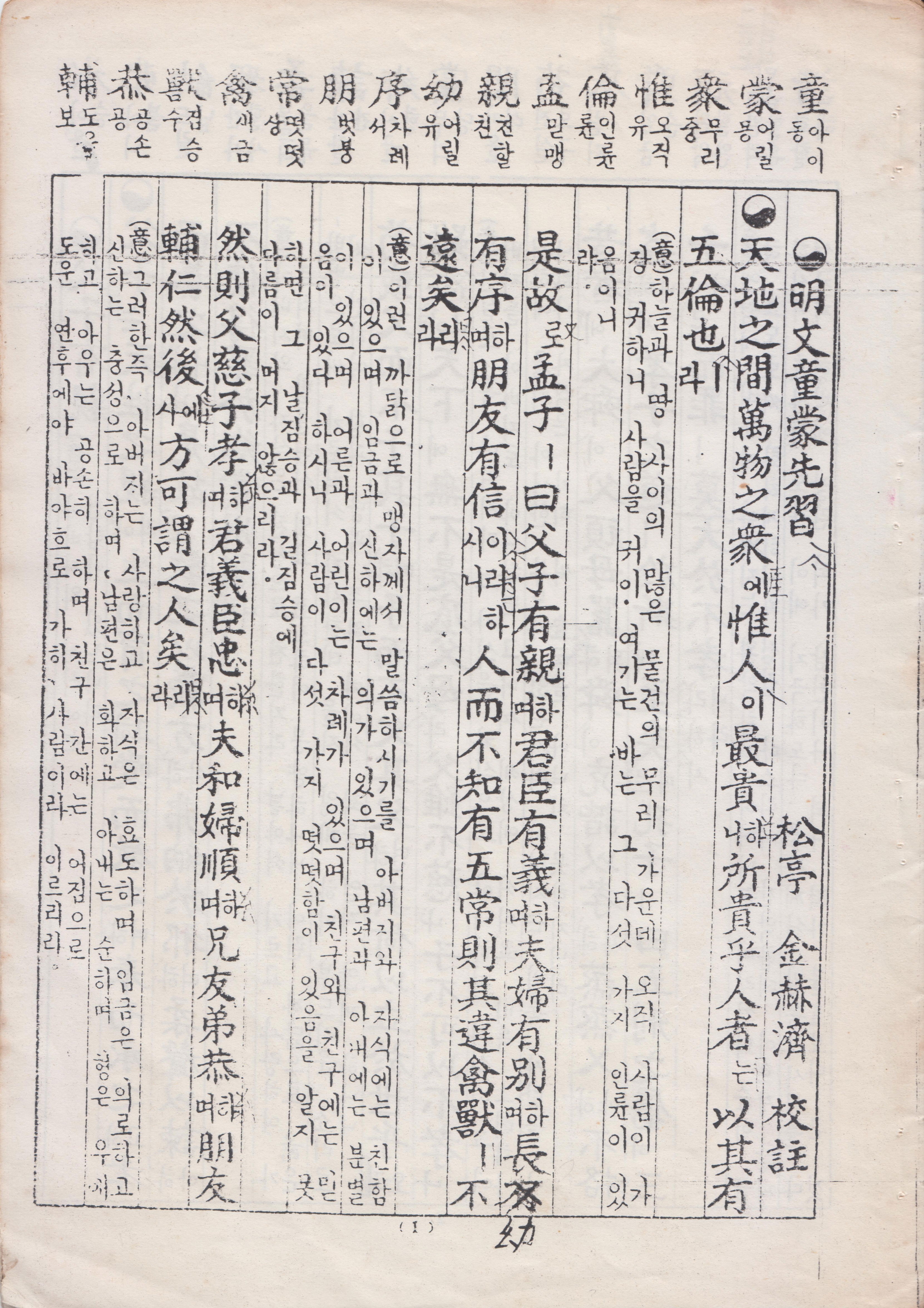 天地之間萬物之衆 惟人 最貴 所貴乎人者 以其有五倫也
