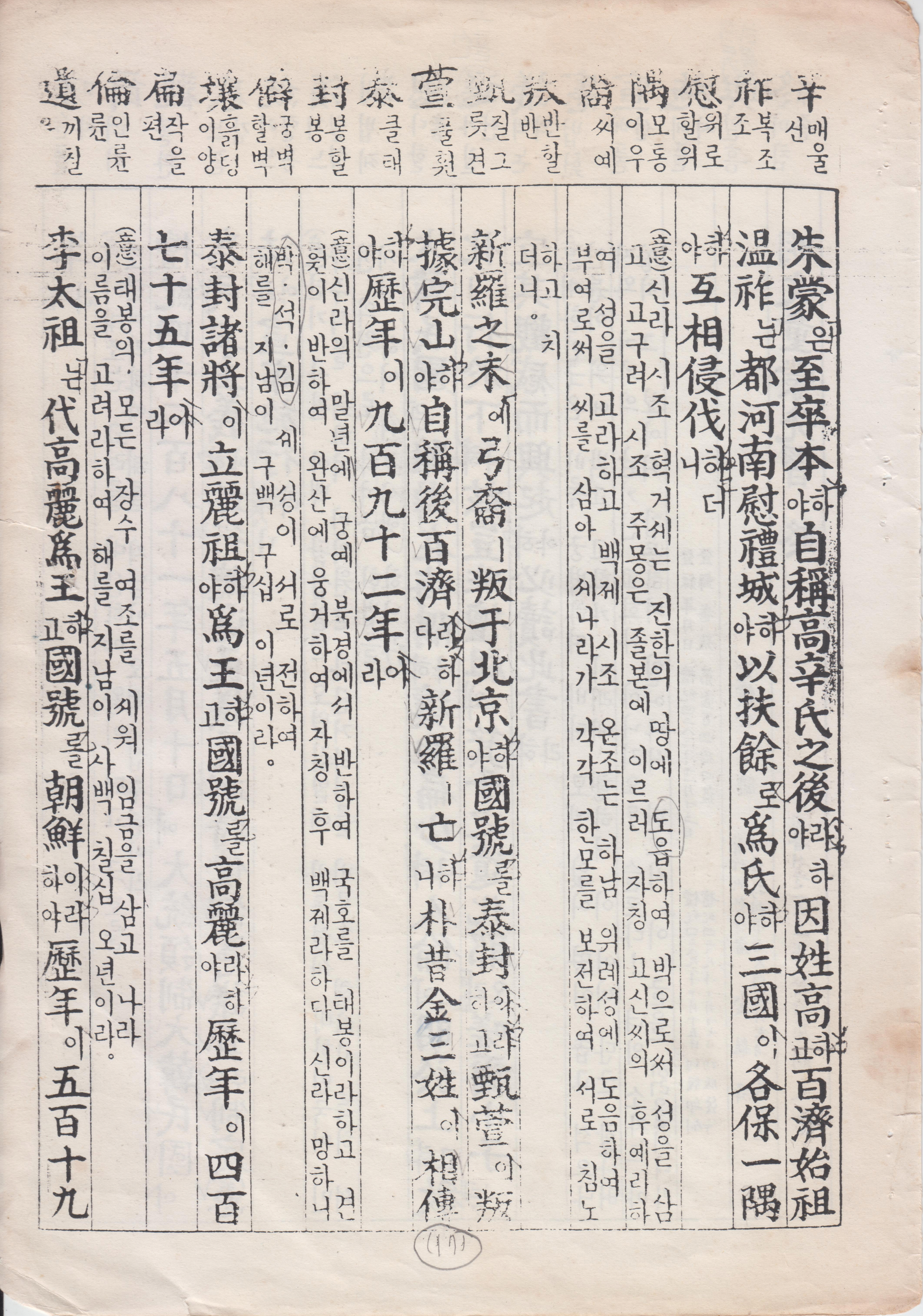 新羅之末 弓裔叛于北京 國號 泰封 甄萱 叛據完山 自稱後百濟 新羅亡 朴昔金三姓 相傳 歷年 九百九十二年