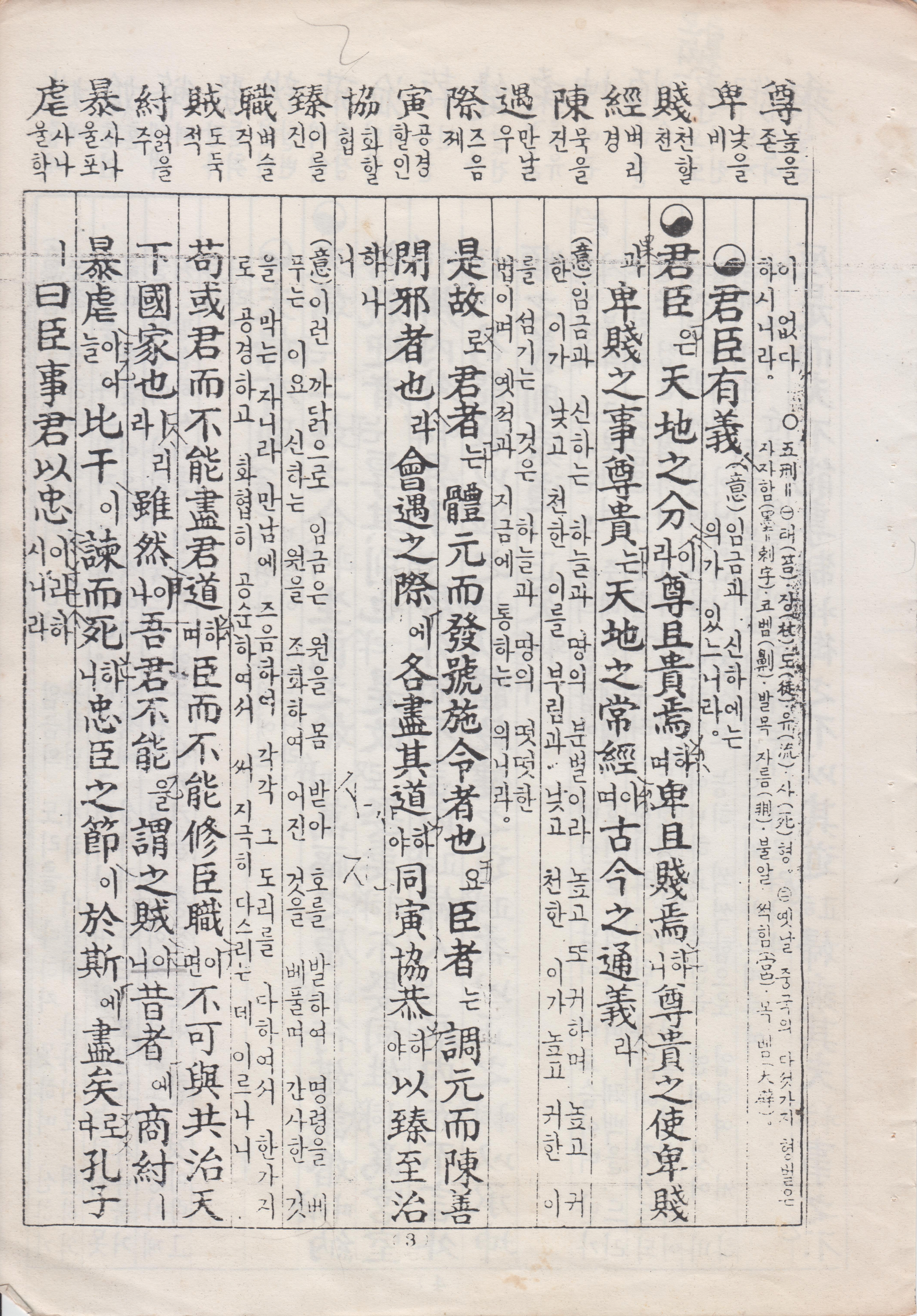 夫此書 卽東儒所撰也 總冠以五倫 復以父子君臣夫婦長幼朋友 列之于次 而其自太極肇判 三皇五帝夏殷周漢唐宋 以至皇朝 歷代世系 纖悉備錄 逮夫我東 始檀君 歷三國 至于我朝 亦爲俱載 文雖約而錄則博 卷雖小而包則大 其況堯舜之道 孝弟而已 舜之命契 以五品爲重 此文之冠以五倫者 其意宏矣