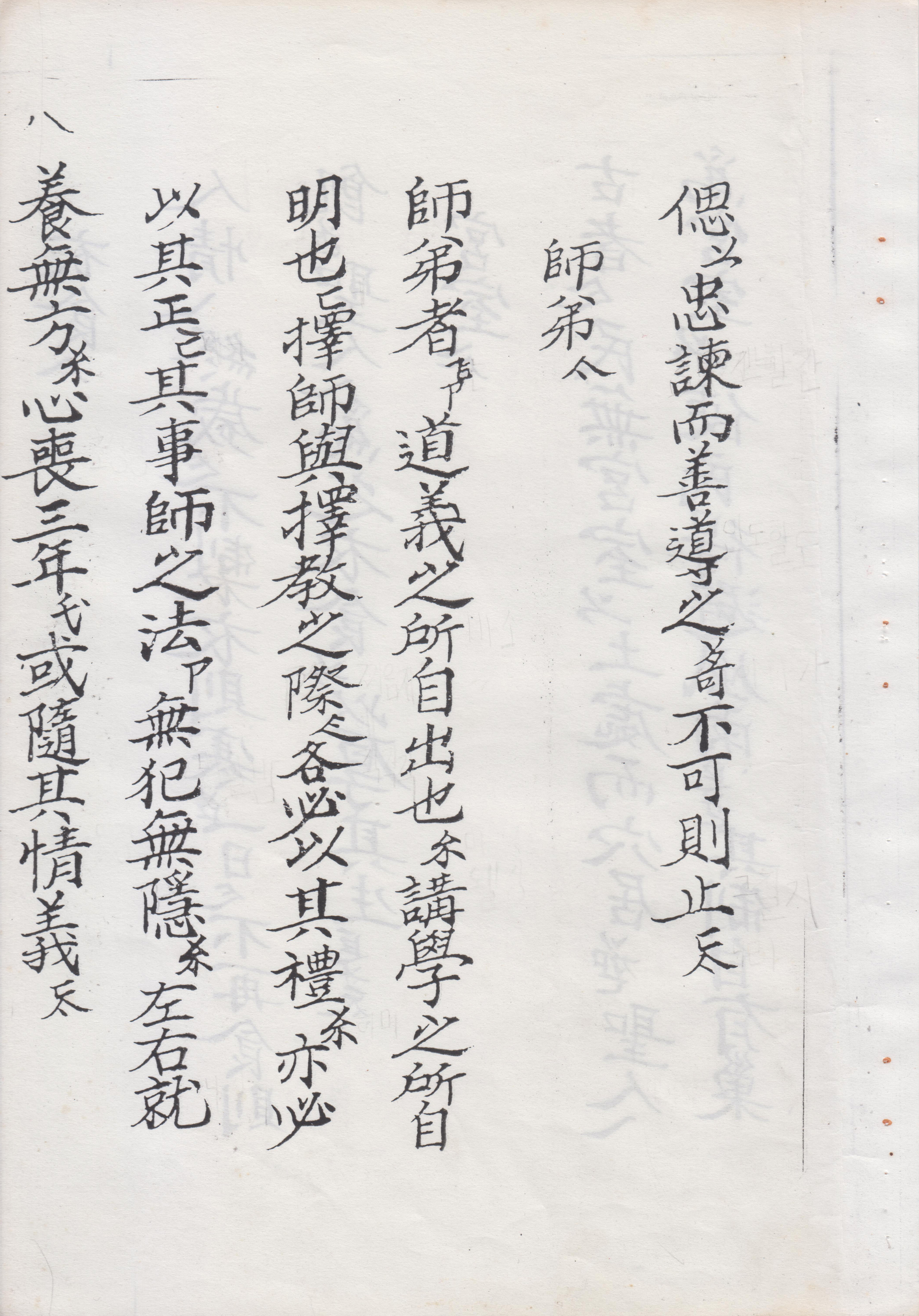 弟子라. 弟子之職은 夙興夜寐에 溫恭自虛之心으로 惟聽先生施敎하고 所受之業을 效則必行之니라.