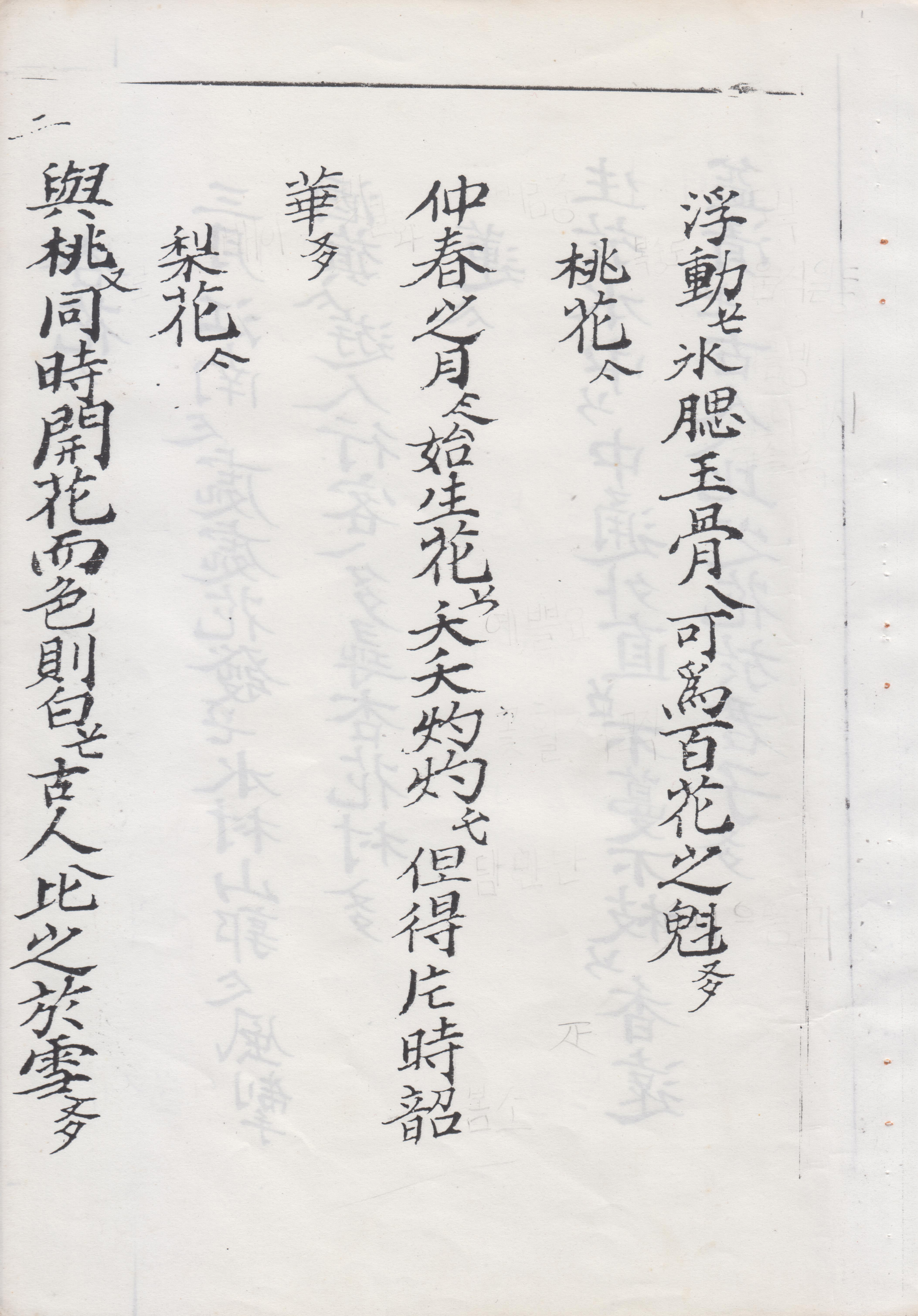 梨花라. 與桃로 同時開花而其色則白하니 古人이 比之於雪하고 紛紛落花에 恰似白雪이로다.