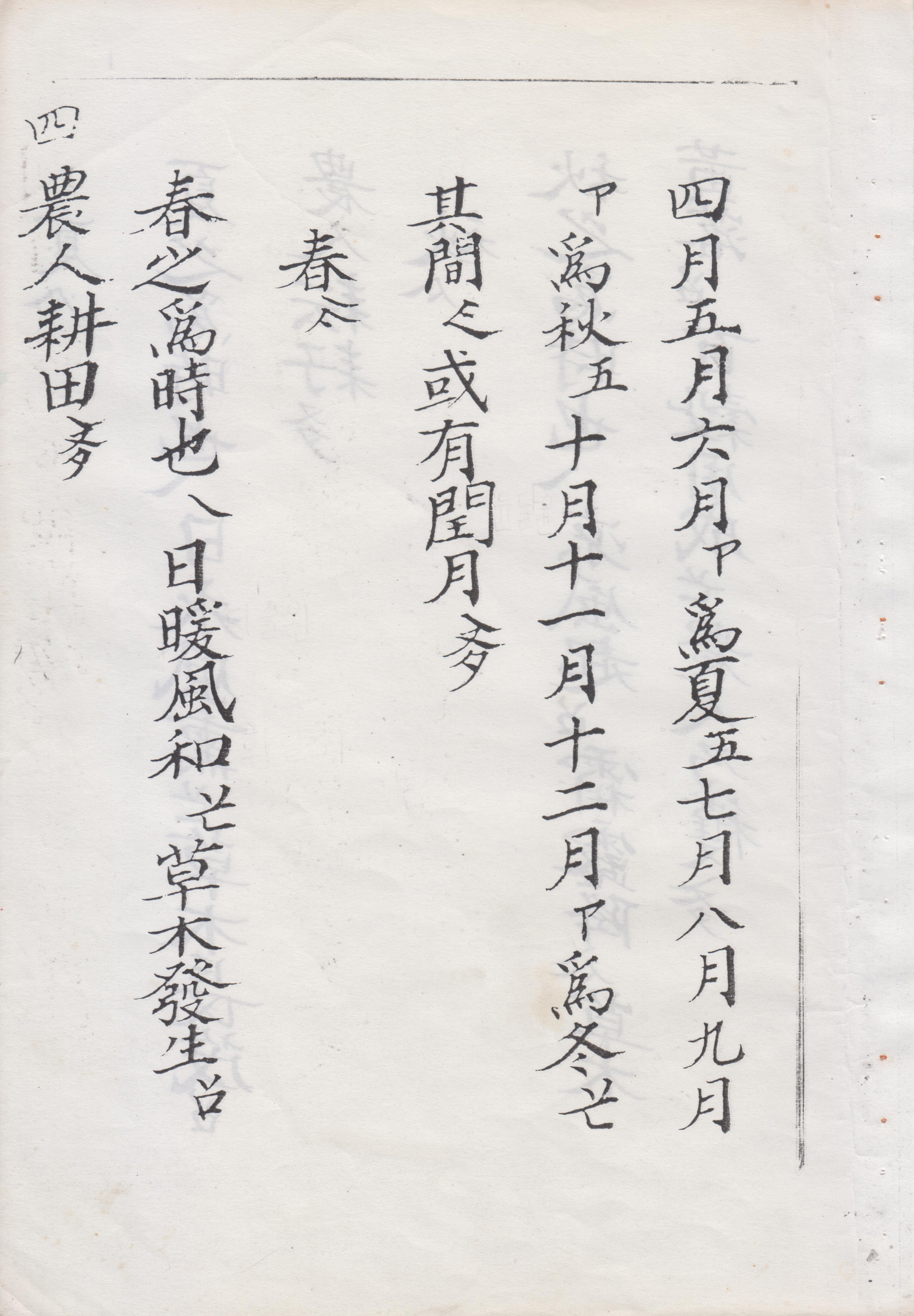 四時라. 一歲有四時하니 正月二月三月爲春이요 四月五月六月爲夏요
