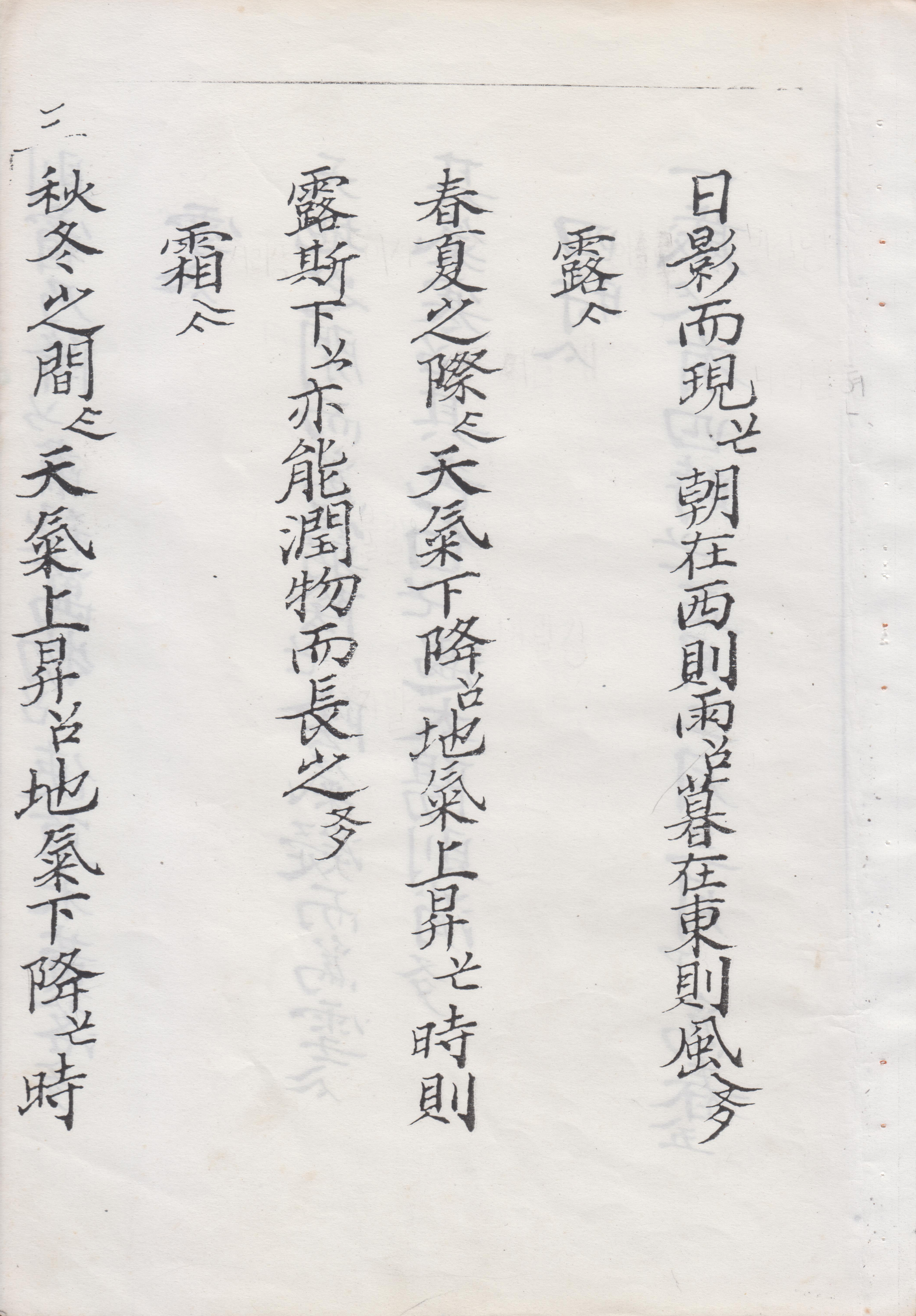 露라. 春夏之際에 地氣上昇하고 天氣下降하니 甘露가 時添하여 草木이 滋濡하니 其澤이 如雨로다.