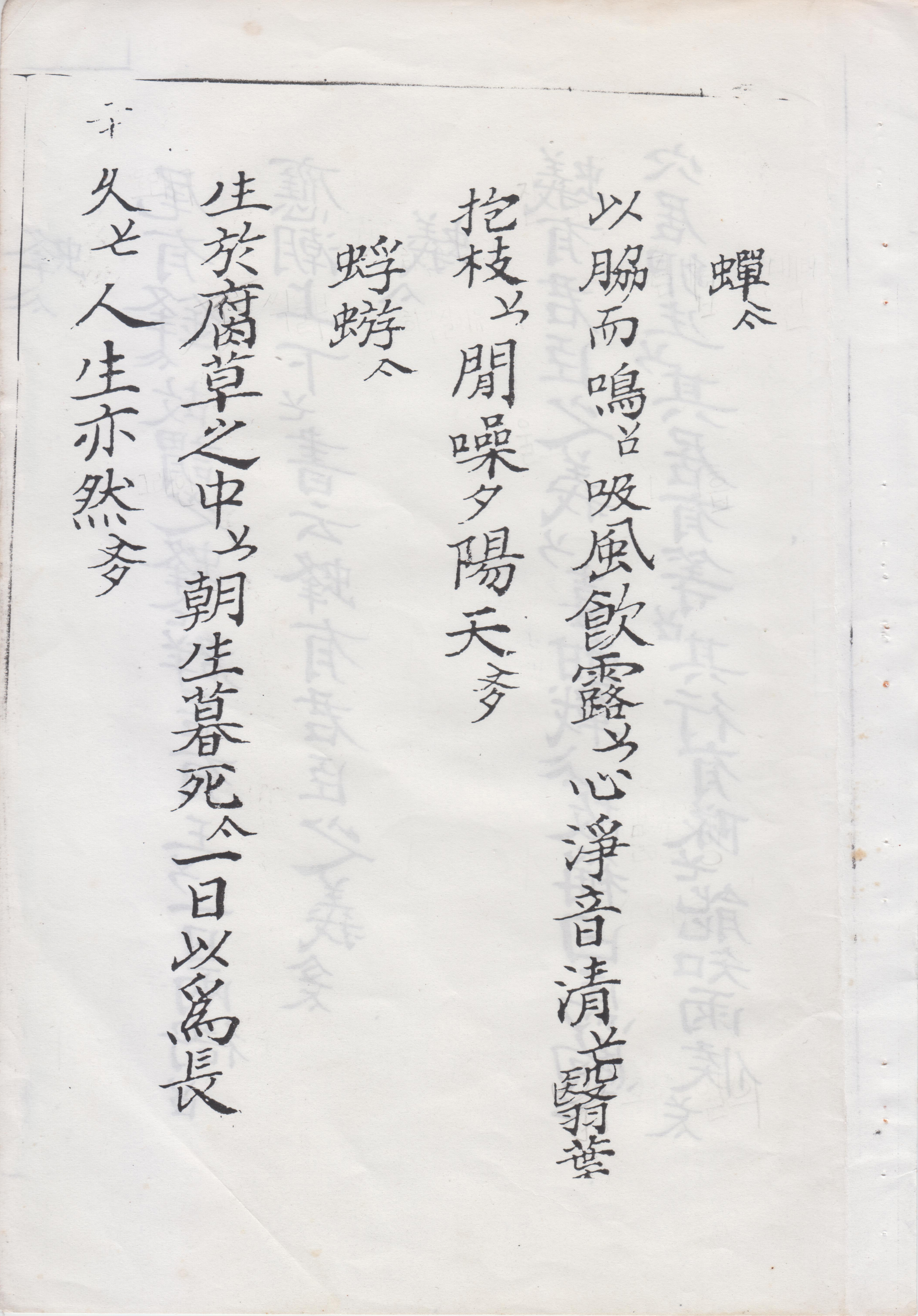 蟬이라. 出自糞壤하여 五月南風에 抱柯長嘯하니 謂之綠陰仙이로다.