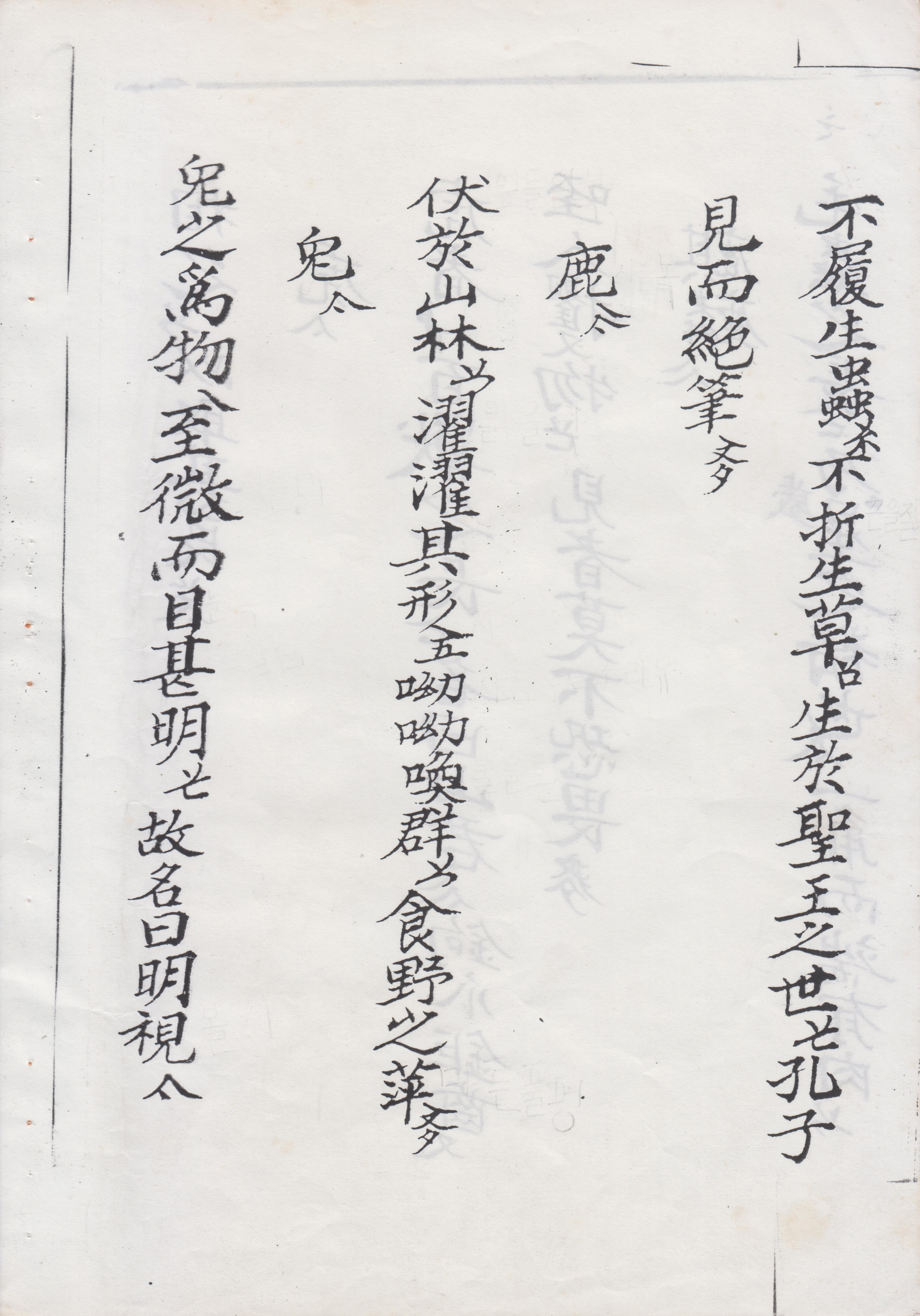 鹿이라. 鹿者는 伏於山林하여 濯濯其形이요 呦呦喚群하니 食野之萍이로다.