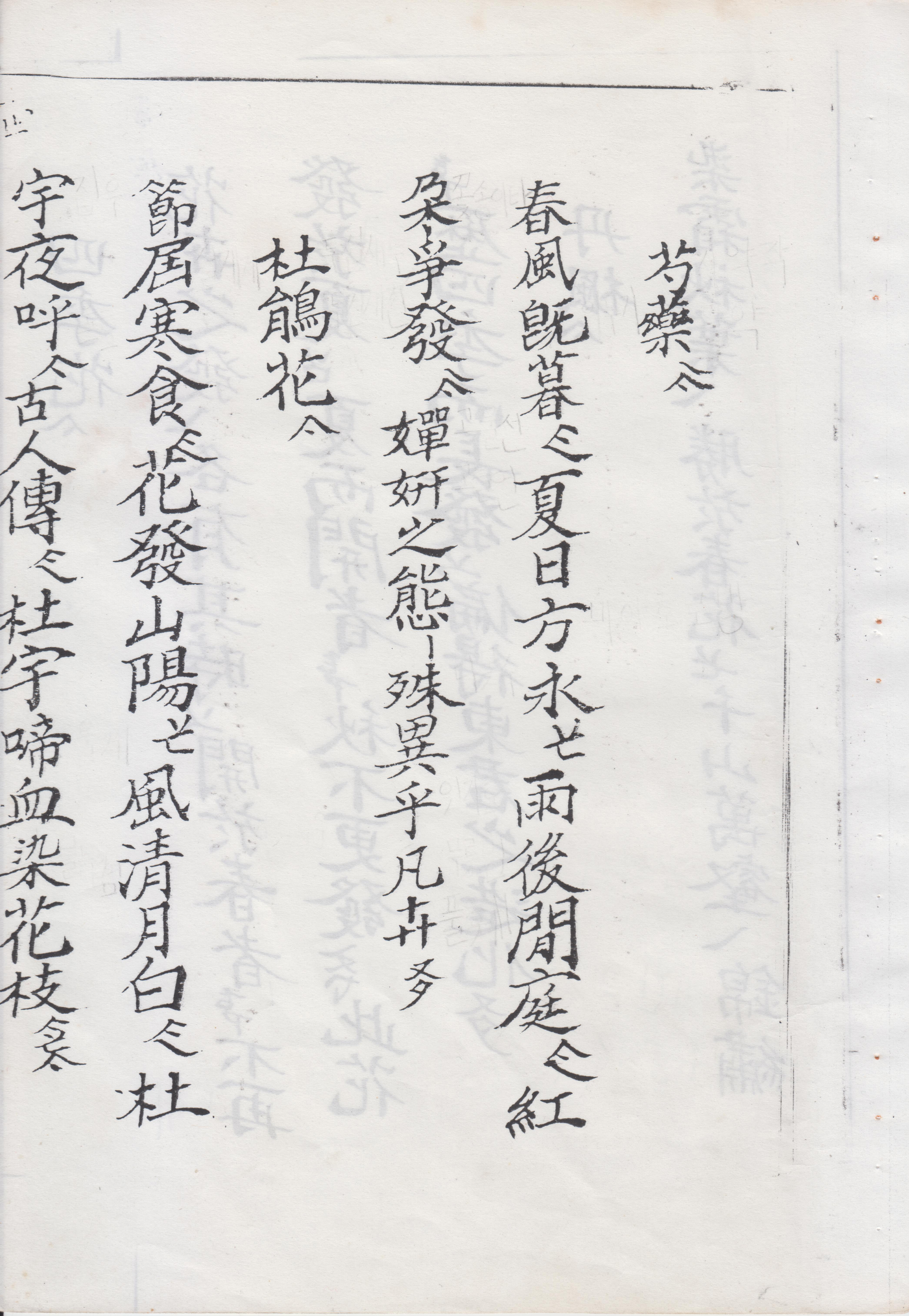 杜鵑이라. 蜀帝之魂이 化爲寃(冤)鳥하니 其名曰杜宇이라. 春山花月에 長呼不如歸로다.