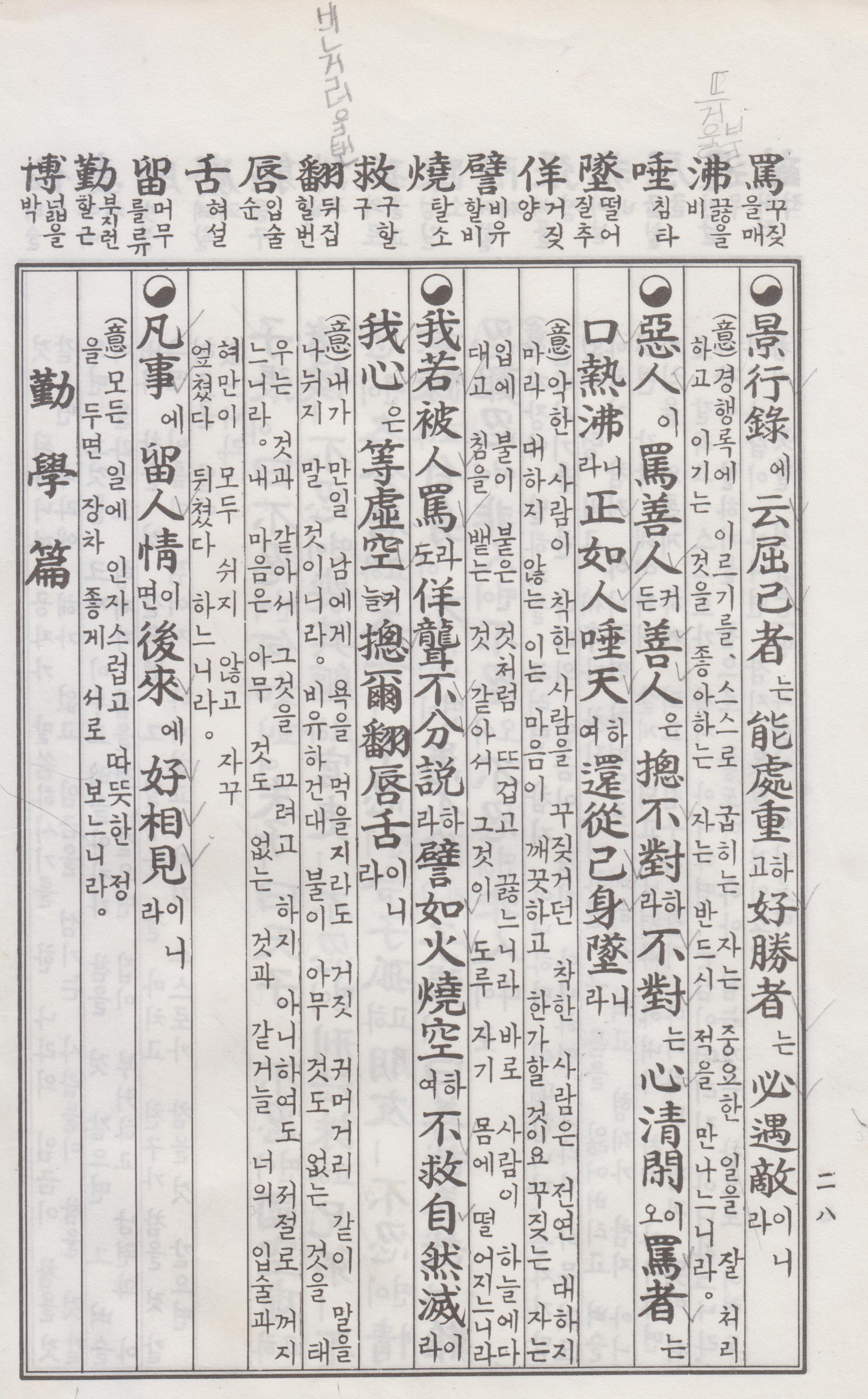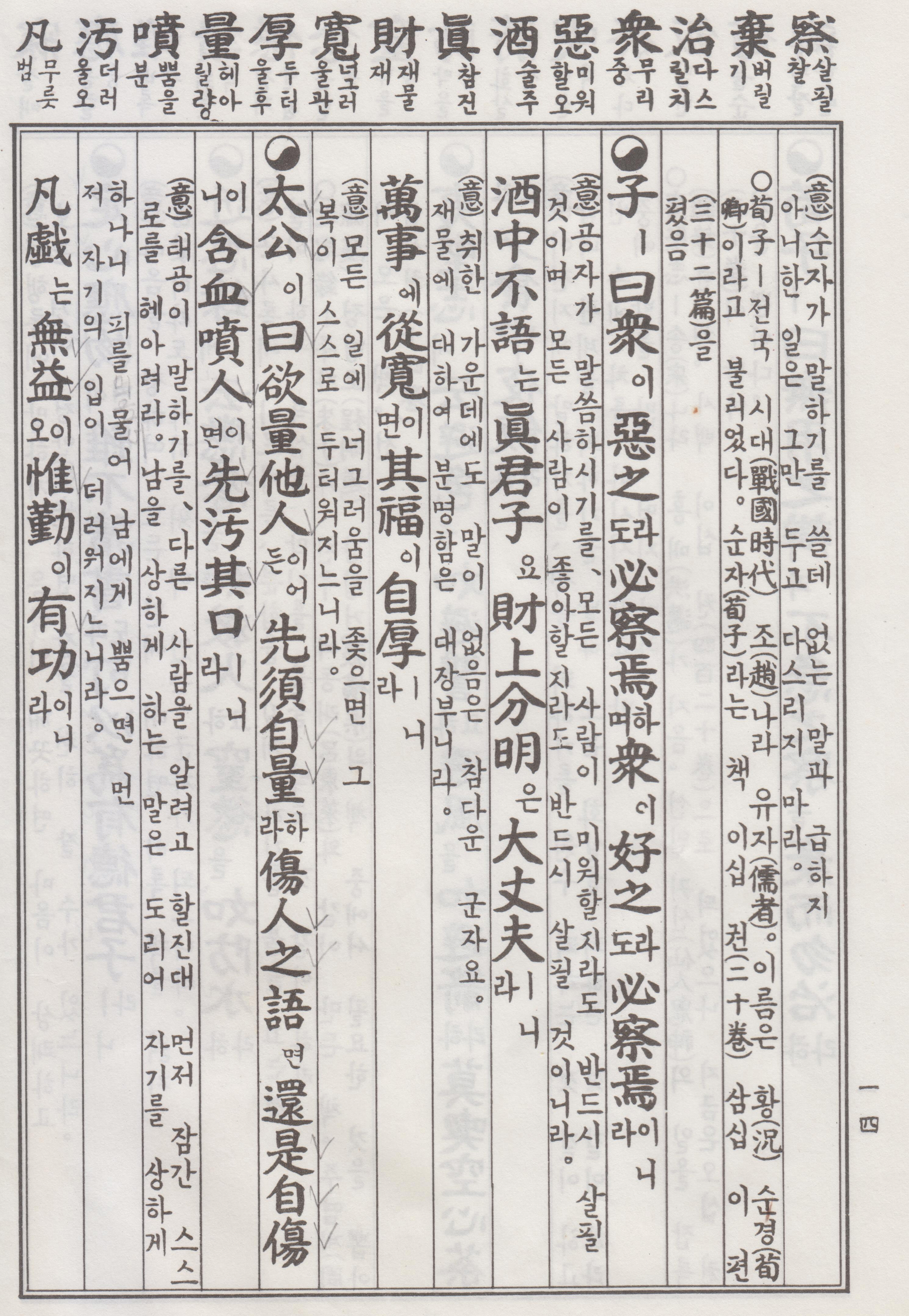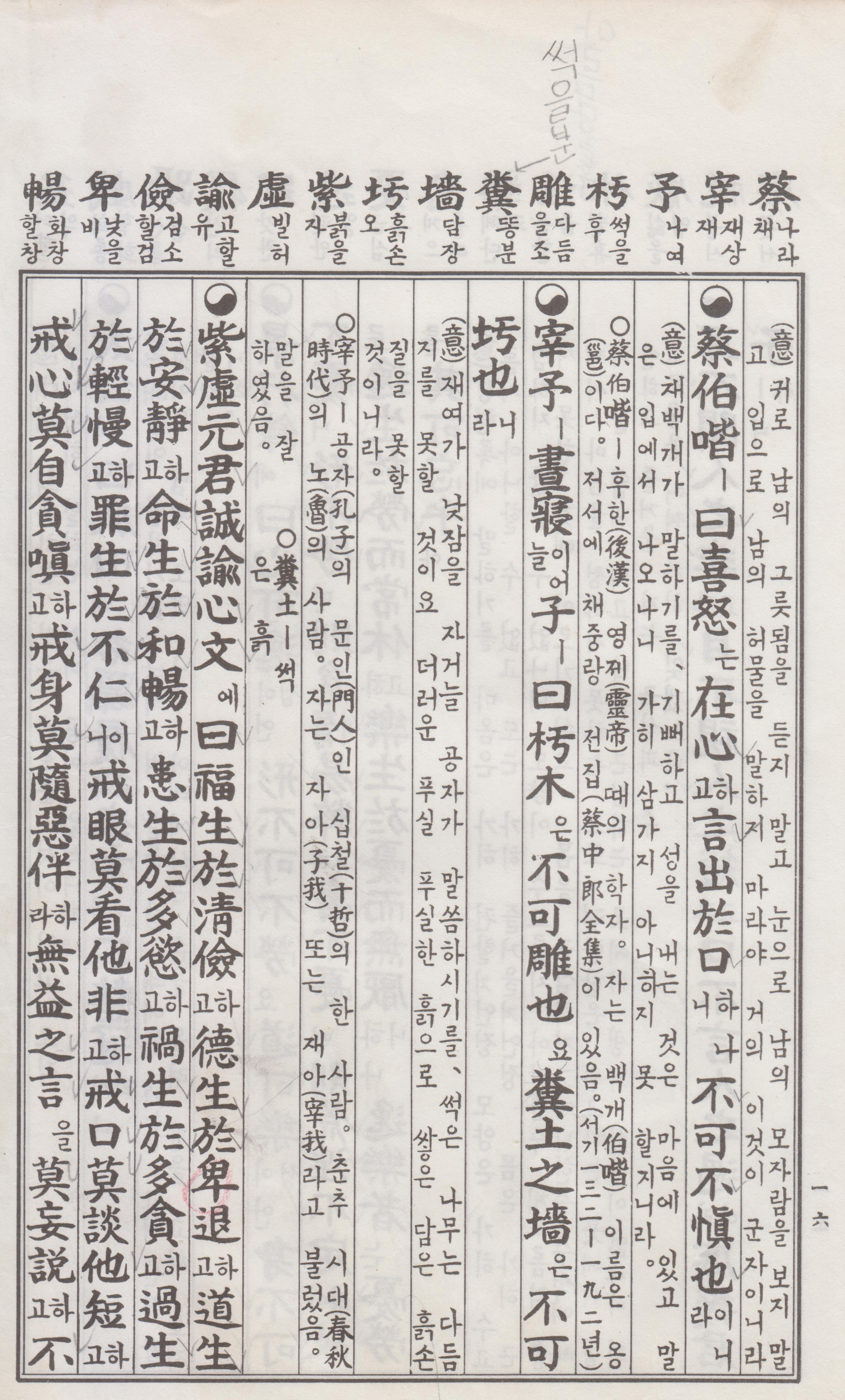 蔡伯喈曰, 喜怒在心, 言出於口, 不可不愼也。