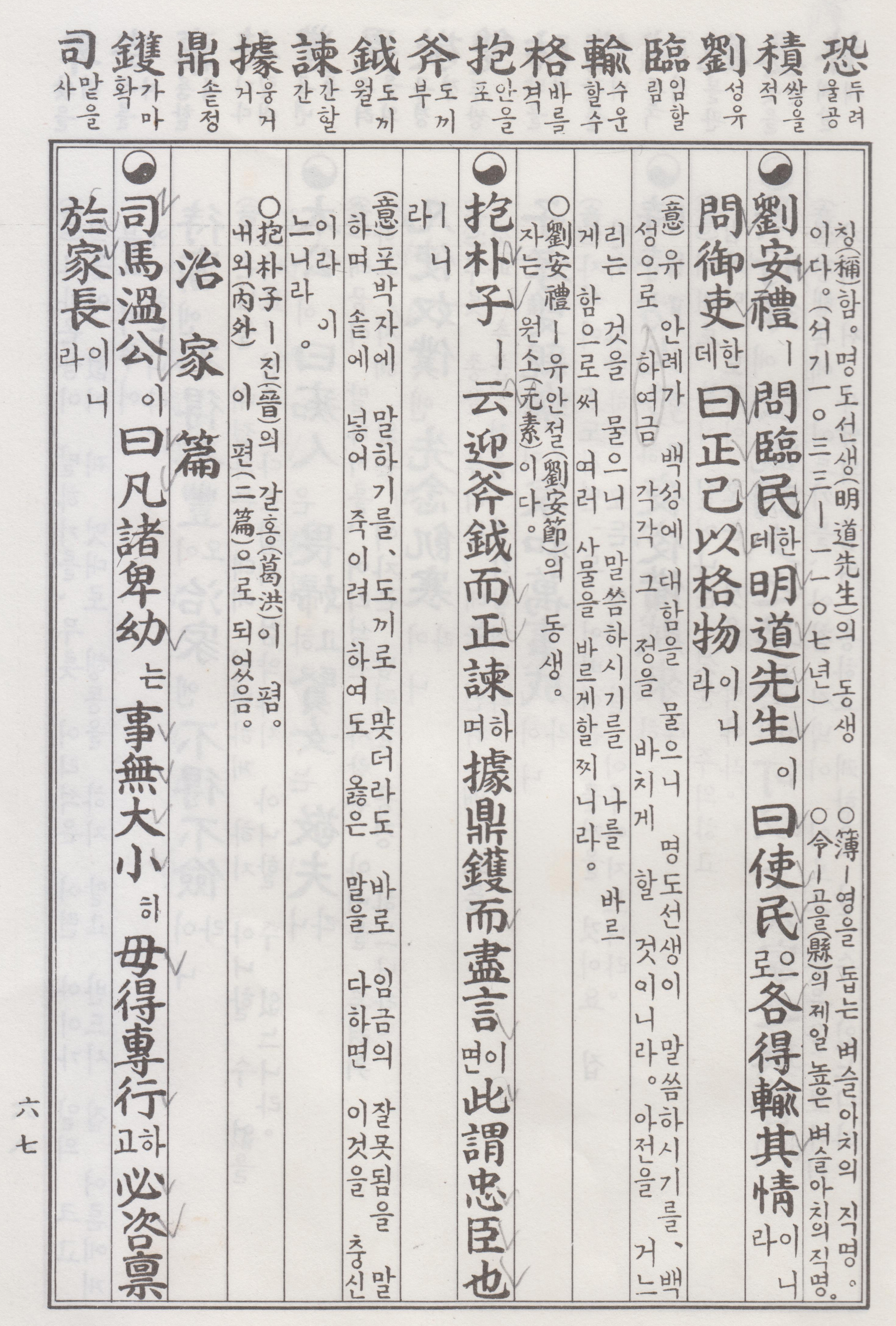童蒙訓曰, 當官之法, 唯有三事, 曰淸曰愼曰勤, 知此三者, 知所以持身矣。