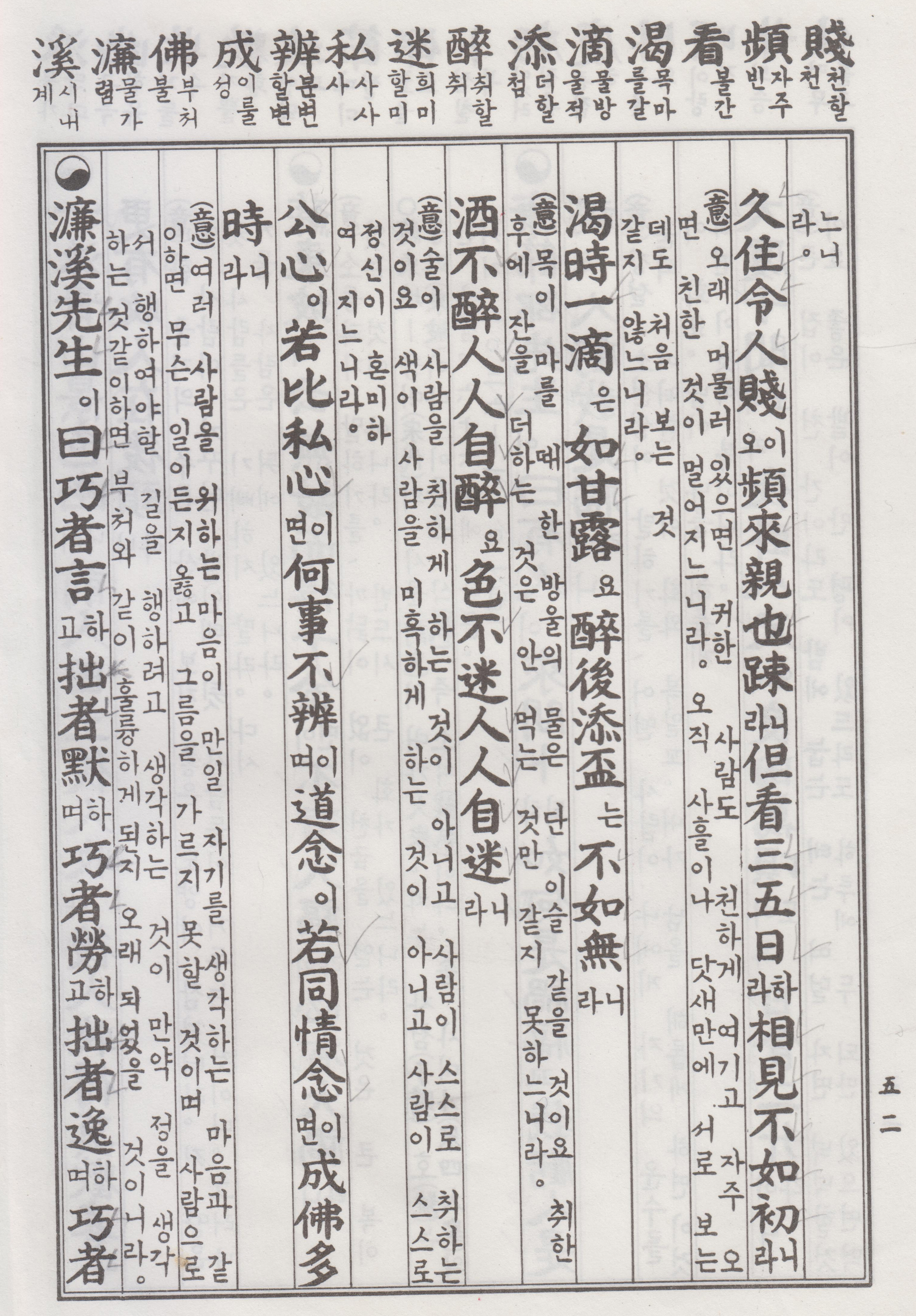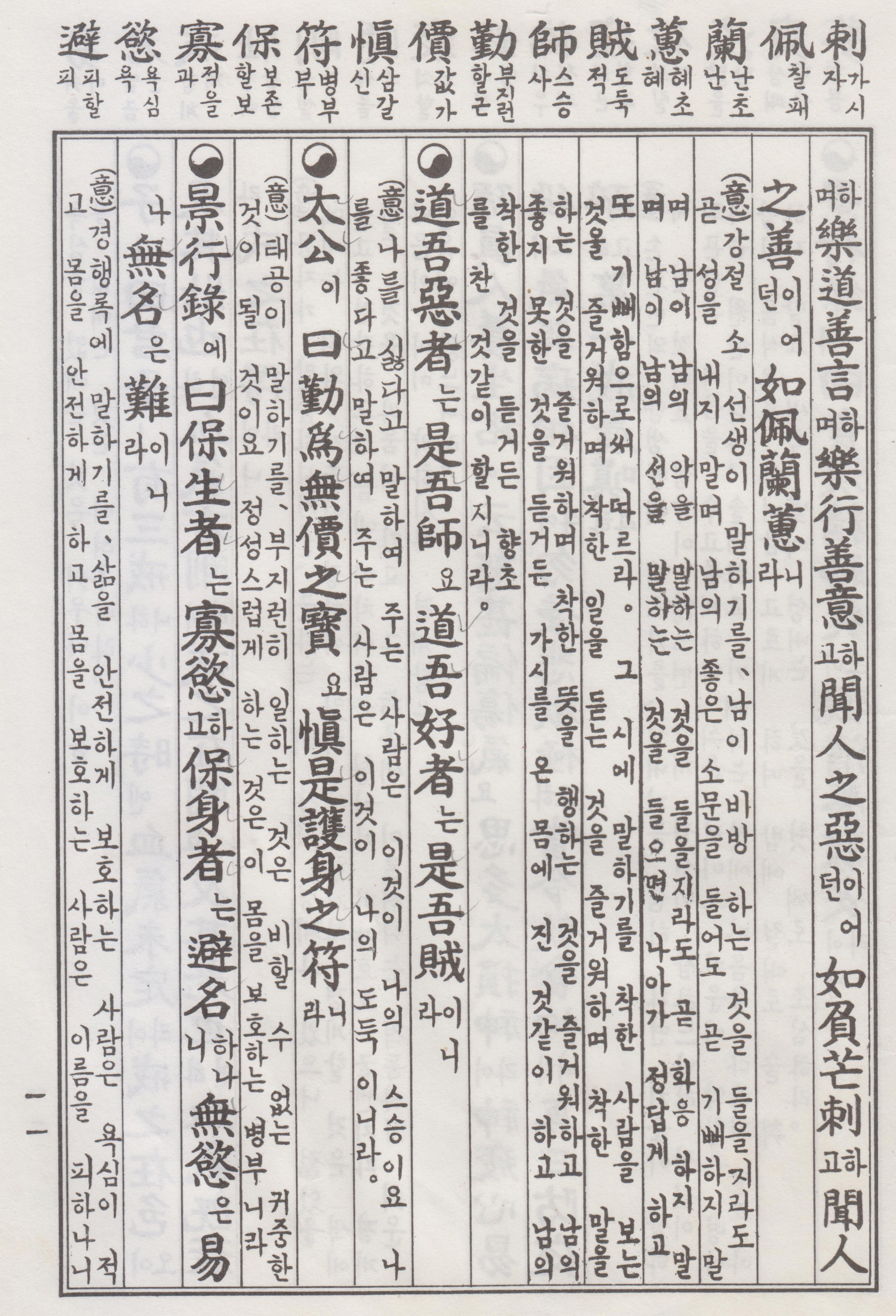 景行錄曰, 恩義廣施, 人生何處不相逢, 讐怨莫結, 路逢狹處難回避。