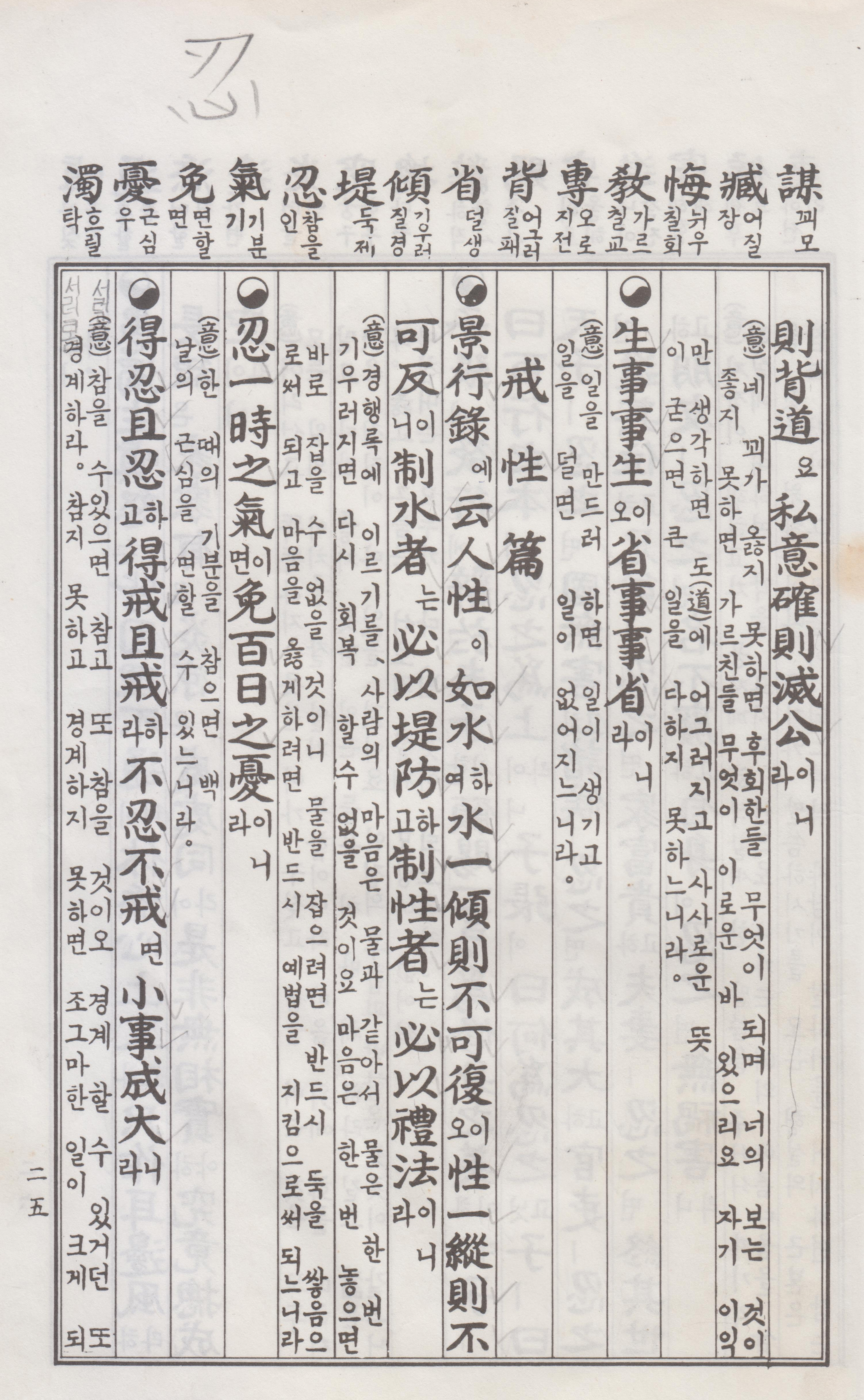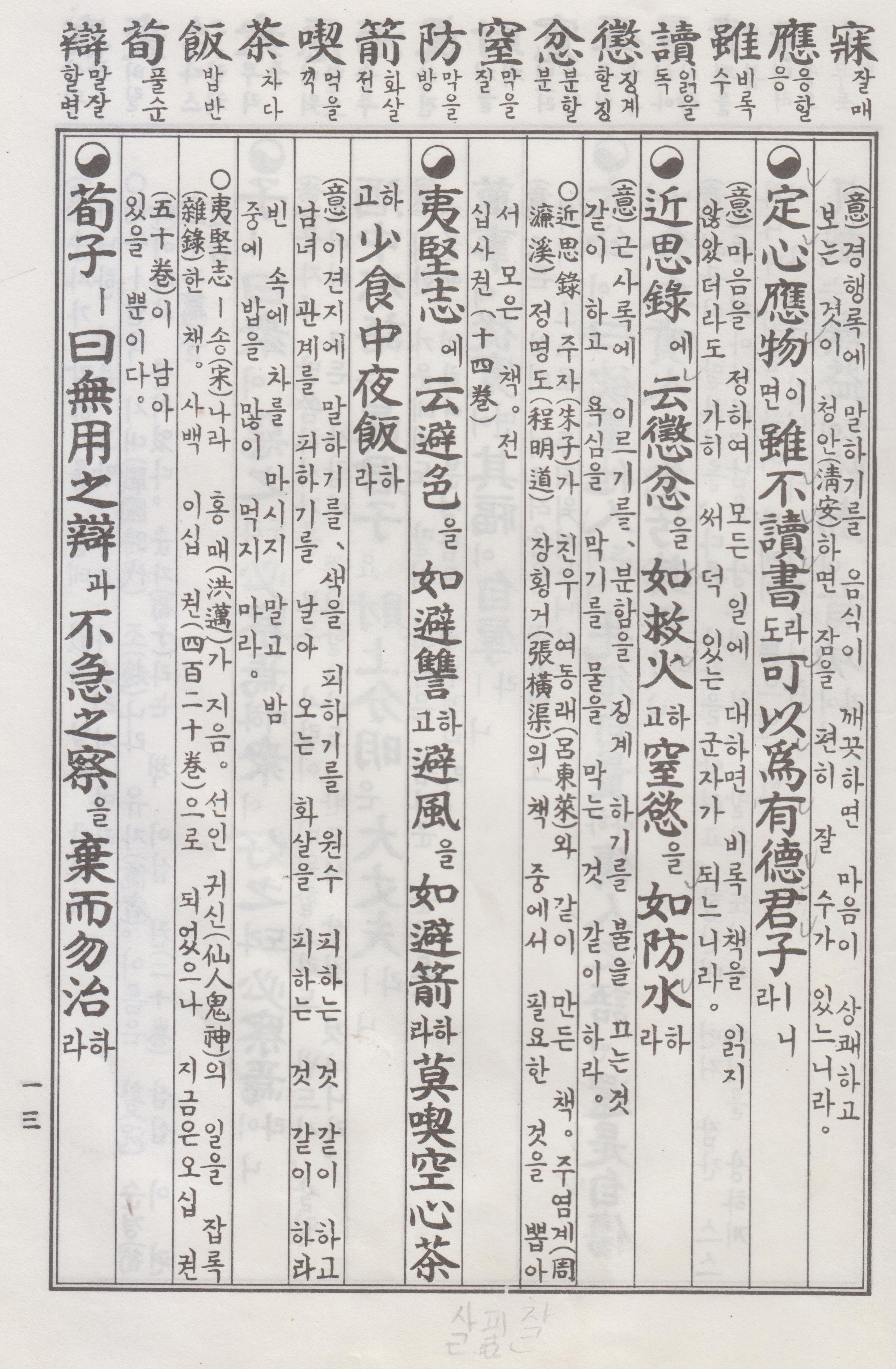 近思錄云, 懲忿如救火, 窒慾如防水。
