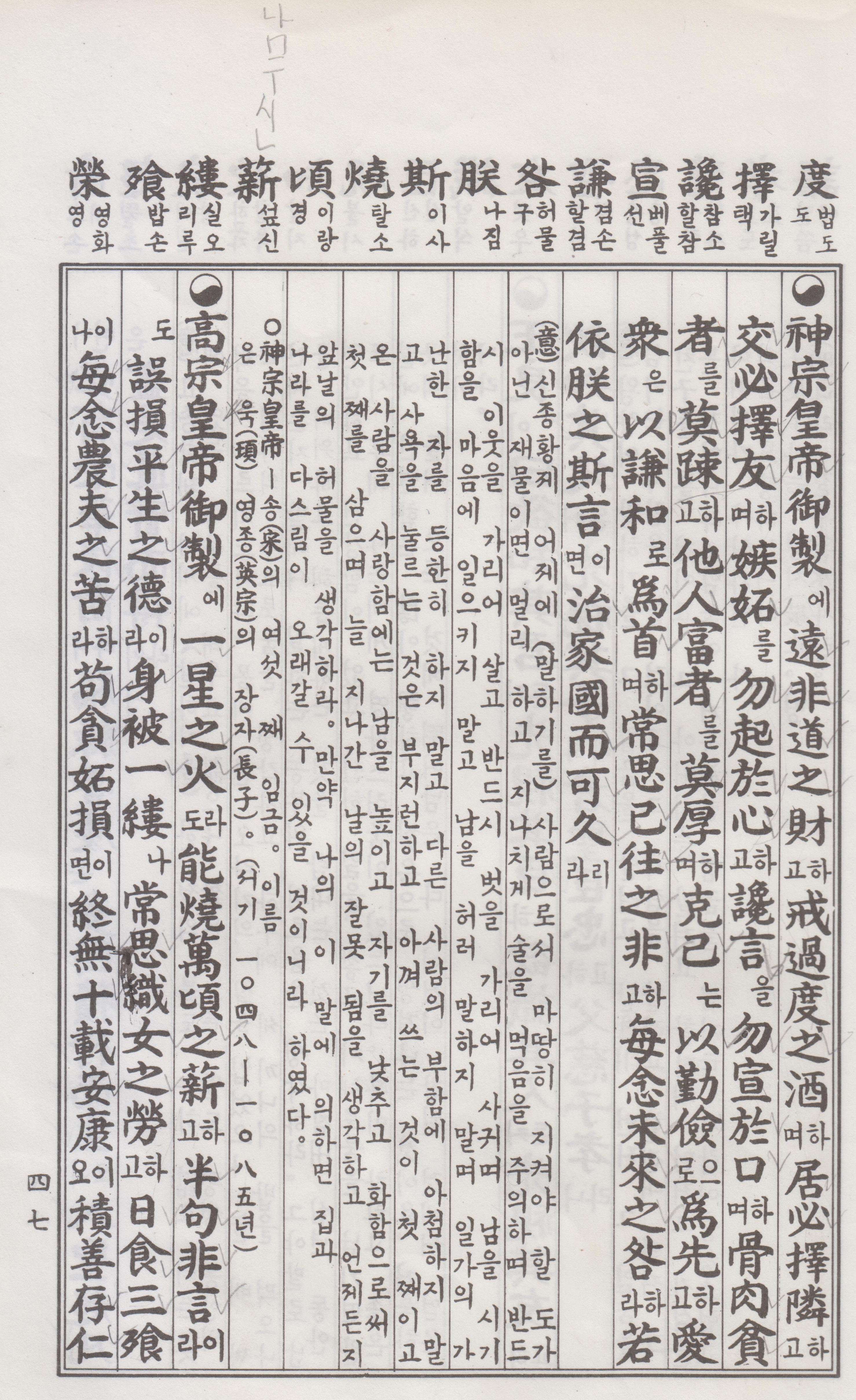婦德者不必才名絶異, 婦容者不必顔色美麗, 婦言者不必辯口利詞, 婦工者不必技巧過人也。