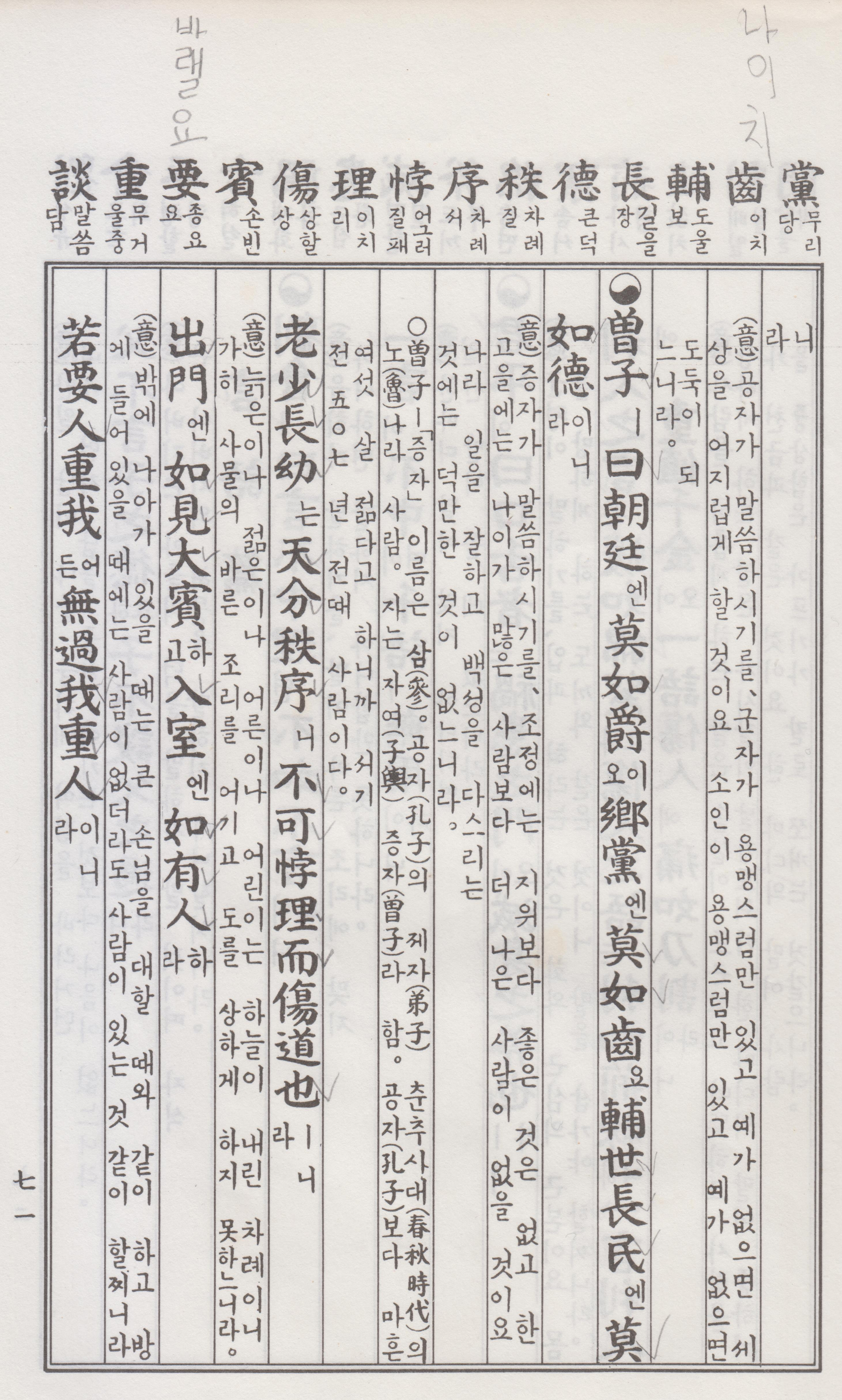 曾子曰, 朝廷莫如爵, 鄕黨莫如齒, 輔世長民莫如德。