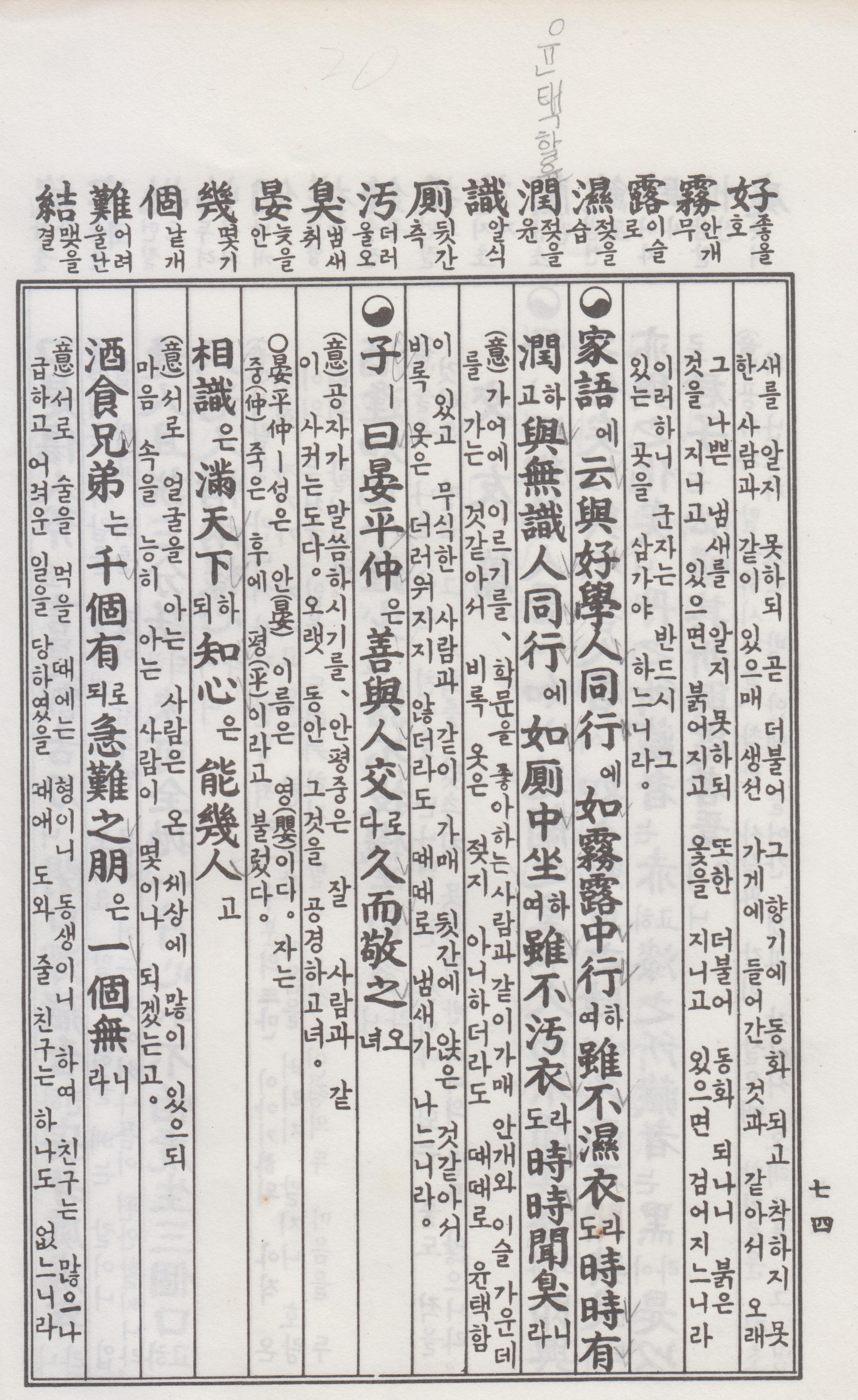 家語云, 與好學人同行, 如霧露中行, 雖不濕衣, 時時有潤, 與無識人同行, 如厠中坐, 雖不汚衣, 時時聞臭。