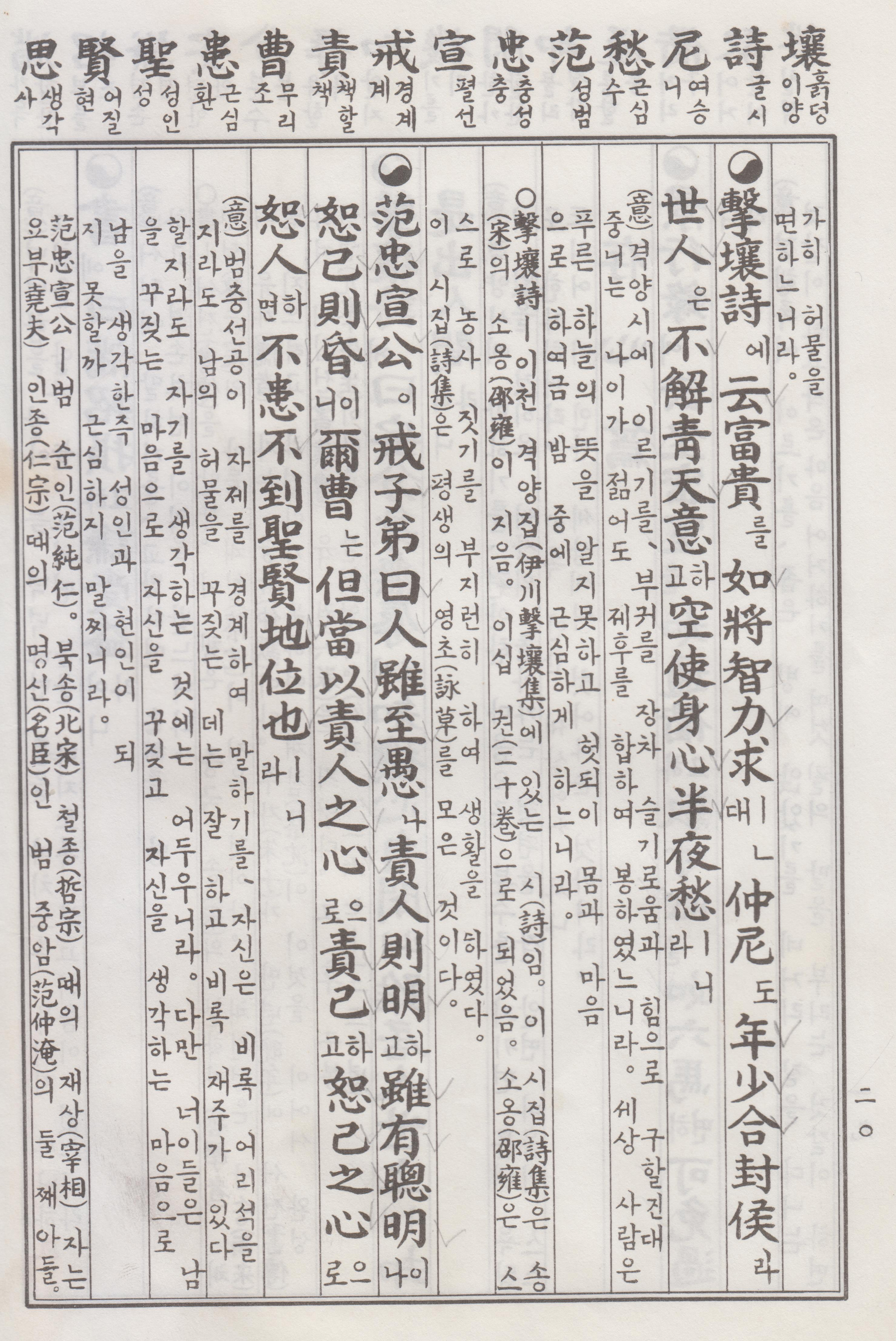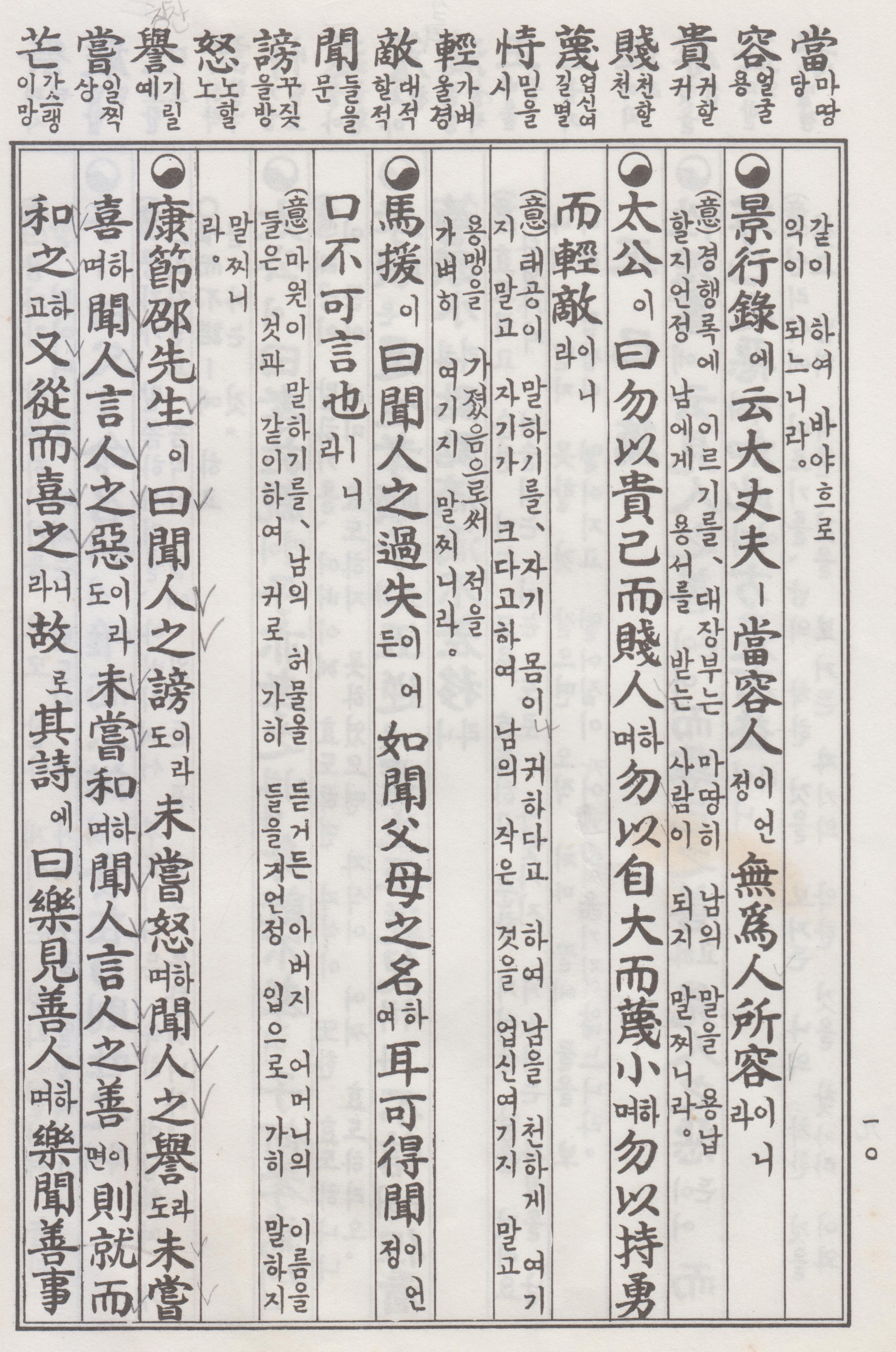 康節邵先生曰, 聞人之謗未嘗怒, 聞人之譽未嘗喜, 聞人言人之惡未嘗和, 聞人言人之善, 則就而和之, 又從而喜之。 故其詩曰, 樂見善人, 樂聞善事, 樂道善言, 樂行善意, 聞人之惡如負芒刺, 聞人之善如佩蘭蕙。