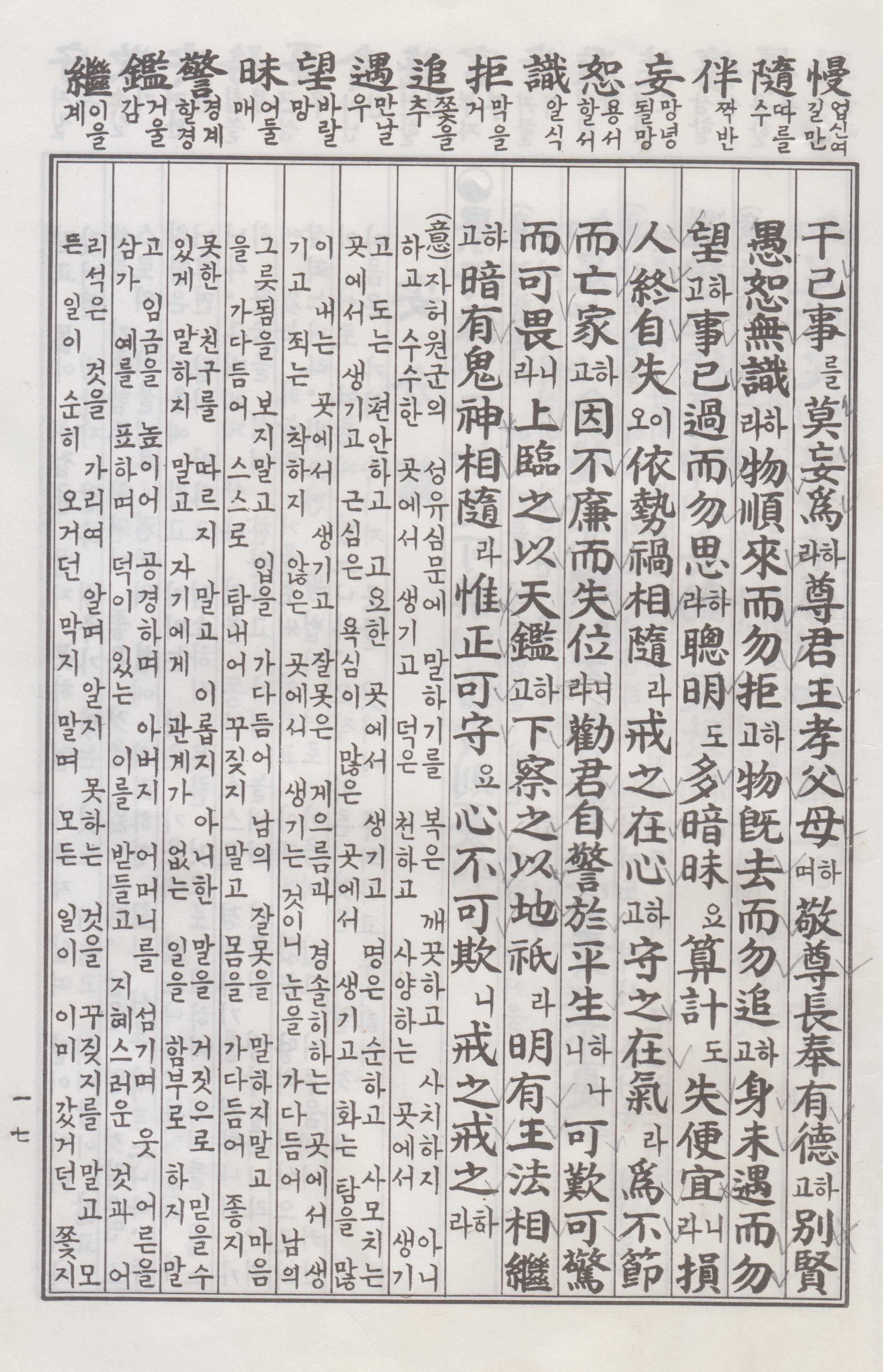 又曰, 一人付書信不可開坼沈滯, 二與人幷座不可窺人私書, 三凡入人家不可看人文字, 四凡借人物不可損壞不還, 五凡喫飮食不可揀擇去取, 六與人同處不可自擇便利, 七凡人富貴不可歎羨詆毁, 凡此數事有犯之者, 足以見用心之不肖, 於存心修身, 大有所害, 因書以自警。