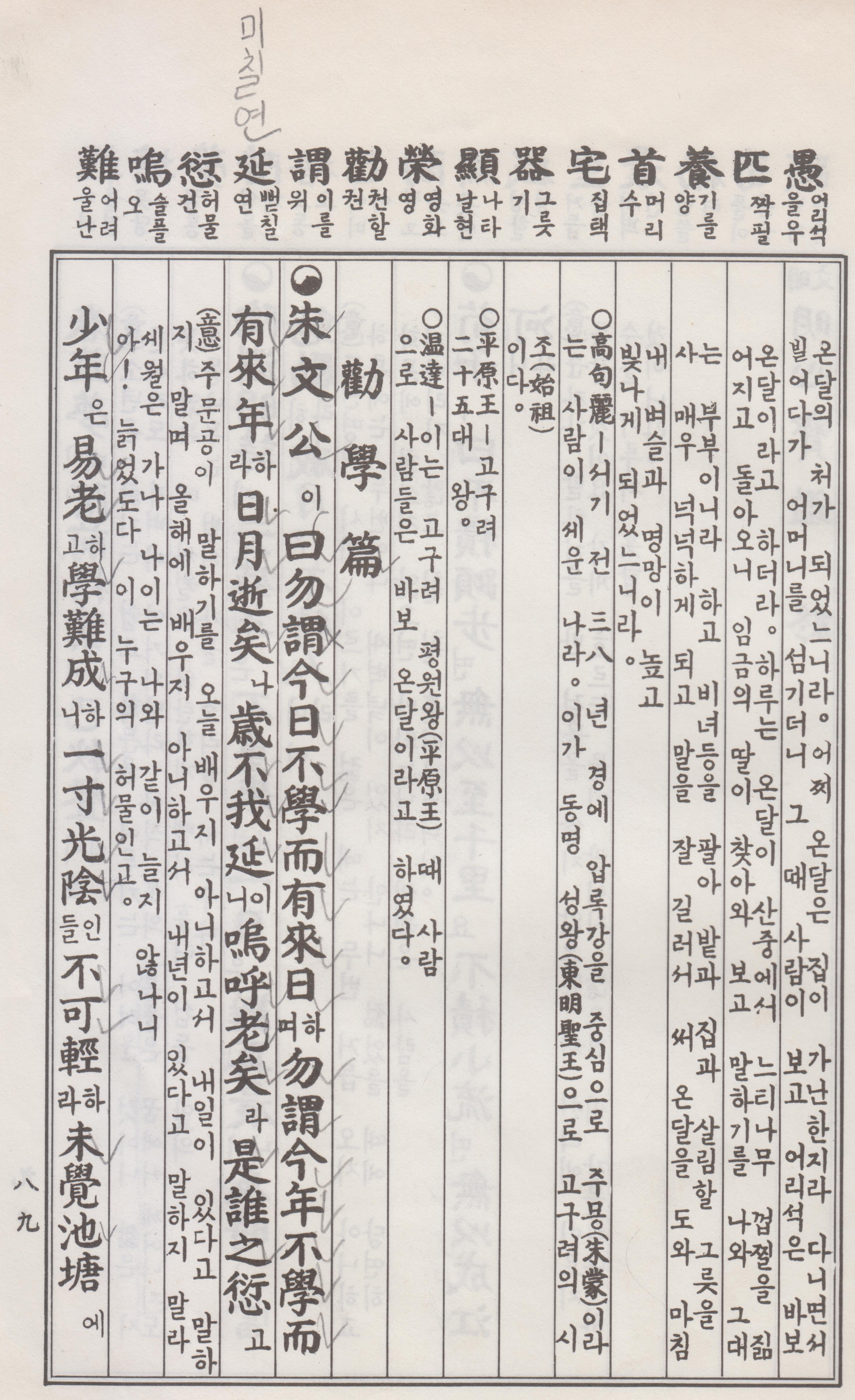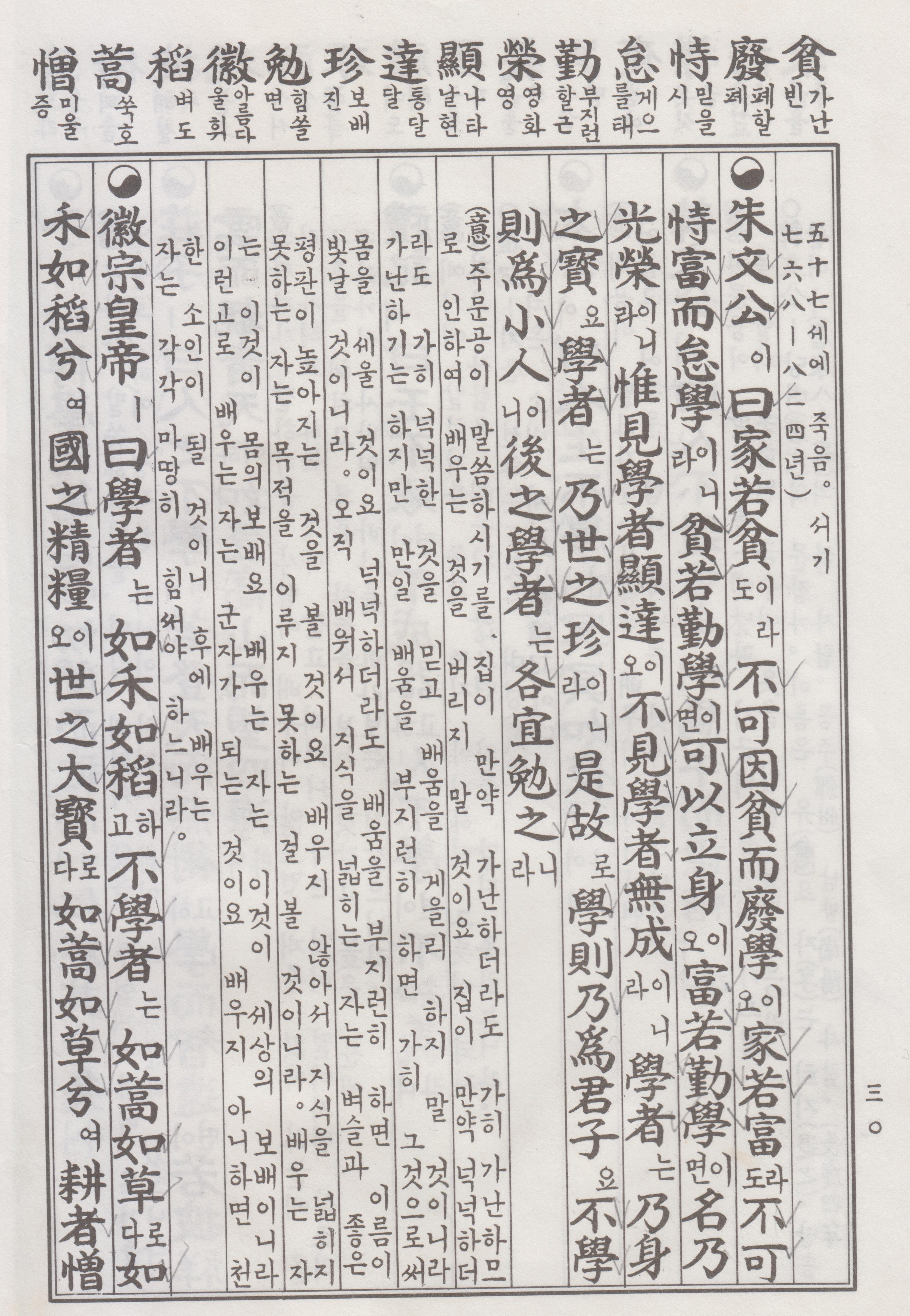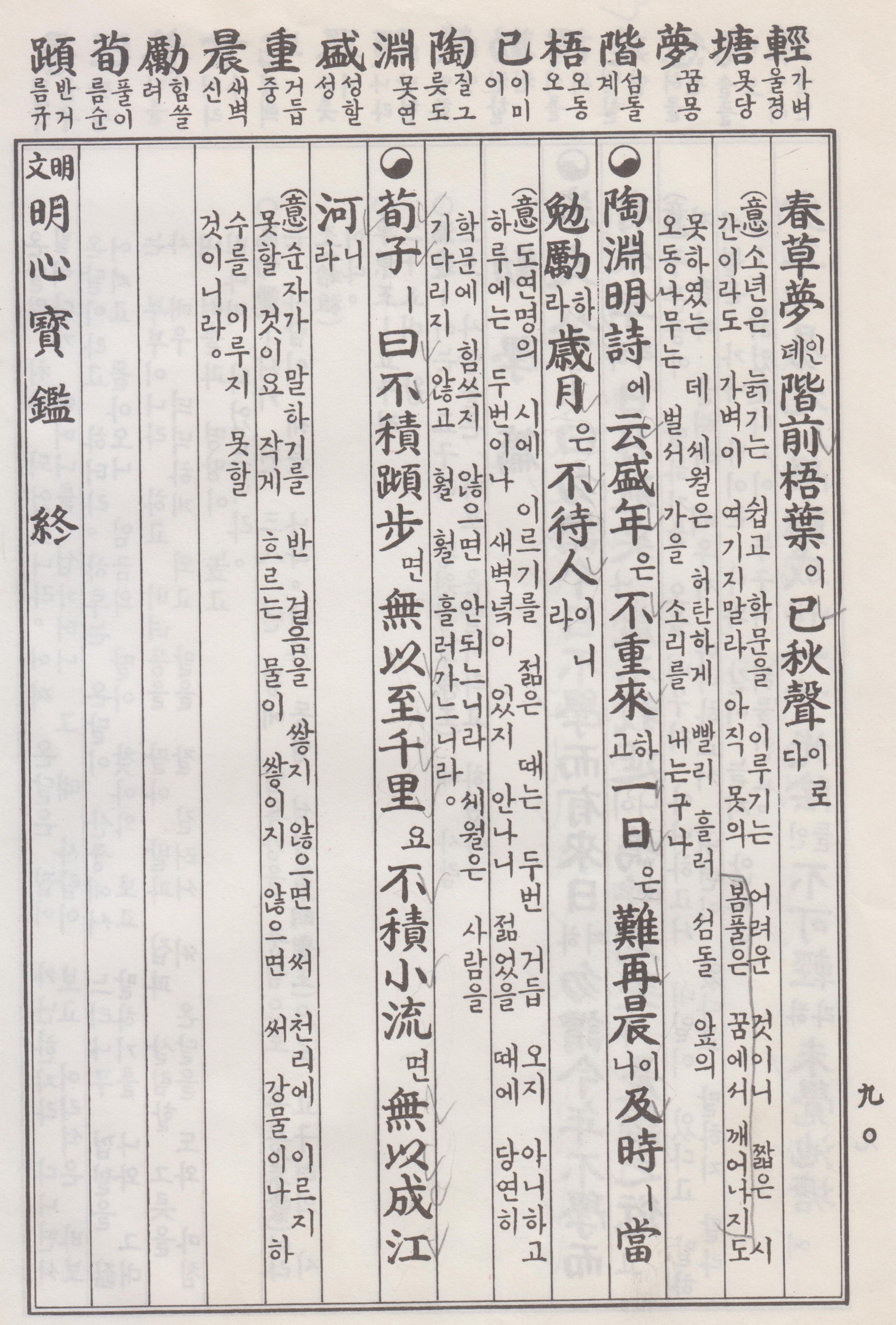 朱文公曰, 勿謂今日不學而有來日, 勿謂今年不學而有來年, 日月逝矣, 歲不我延, 嗚呼老矣, 是誰之愆。