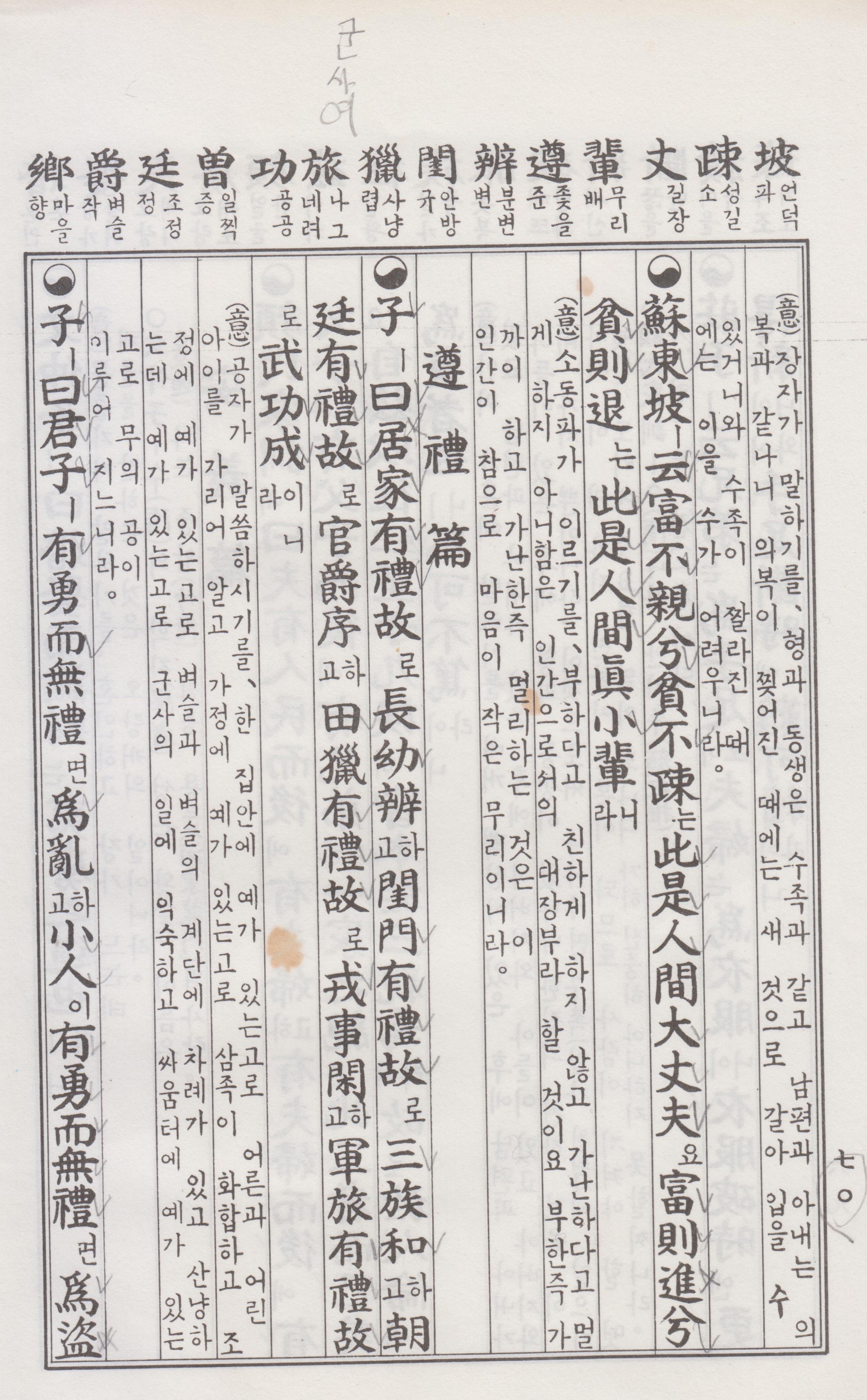 子曰, 君子有勇而無禮爲亂, 小人有勇而無禮爲盜。