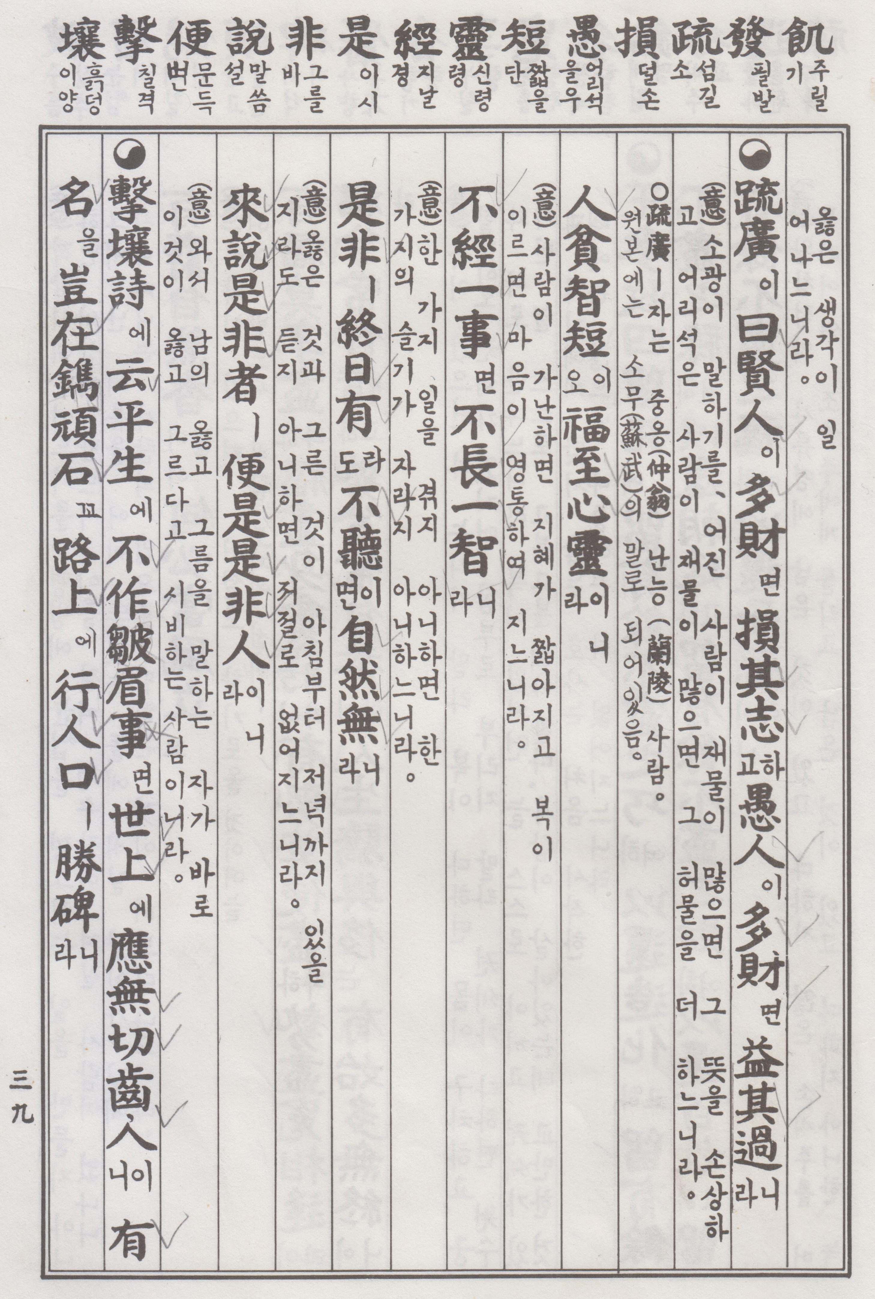 益智書云, 寧無事而家貧, 莫有事而家富。寧無事而住茅屋, 莫有事而住金屋。寧無病而食麤飯, 不有病而服良藥。