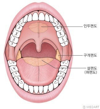 자고 일어나서 보니 목의 편도선이 따끔따끔하다. 이런 것은 무엇이겠습니까? 절간에 들어갈 적에 보면, 절 입구에 사천왕이라는 것이 있습니다. 이 사천왕은 잡귀가 들어올 때 문간에서 막는 놈들이죠. 그래서 무서운 얼굴을 하고 버티고 서있는 거예요. 인체도 사천왕이 있는데, 이것을 어디에 배치하겠습니까? 제일 입구입니다. 그것이 편도선이예요. 발데이어스 링(waldeyer‘s ring)이라고 해서, 링으로 되어 편도선 근처에 백혈구가 밀집되어 둥그렇게 방위선이 쳐 있거든요. 대개 편도선이 부으면 덩달아서 다른 데도 붓지요? 여기 겨드랑이가 붓는 것은, 팔에서 들어오는 외사(外邪)들을 처리하는 사천왕은 겨드랑이에 있는 것이 편하기 때문이지요. 다리에서 들어오는 것은 사타구니에서 처리하고. 인체라는 것은 안을 보호하기 위해서 길목 길목마다 작전적으로 사천왕 누각을 배치해 놓았습니다. 겨드랑이·사타구니·편도선. 아시겠어요?