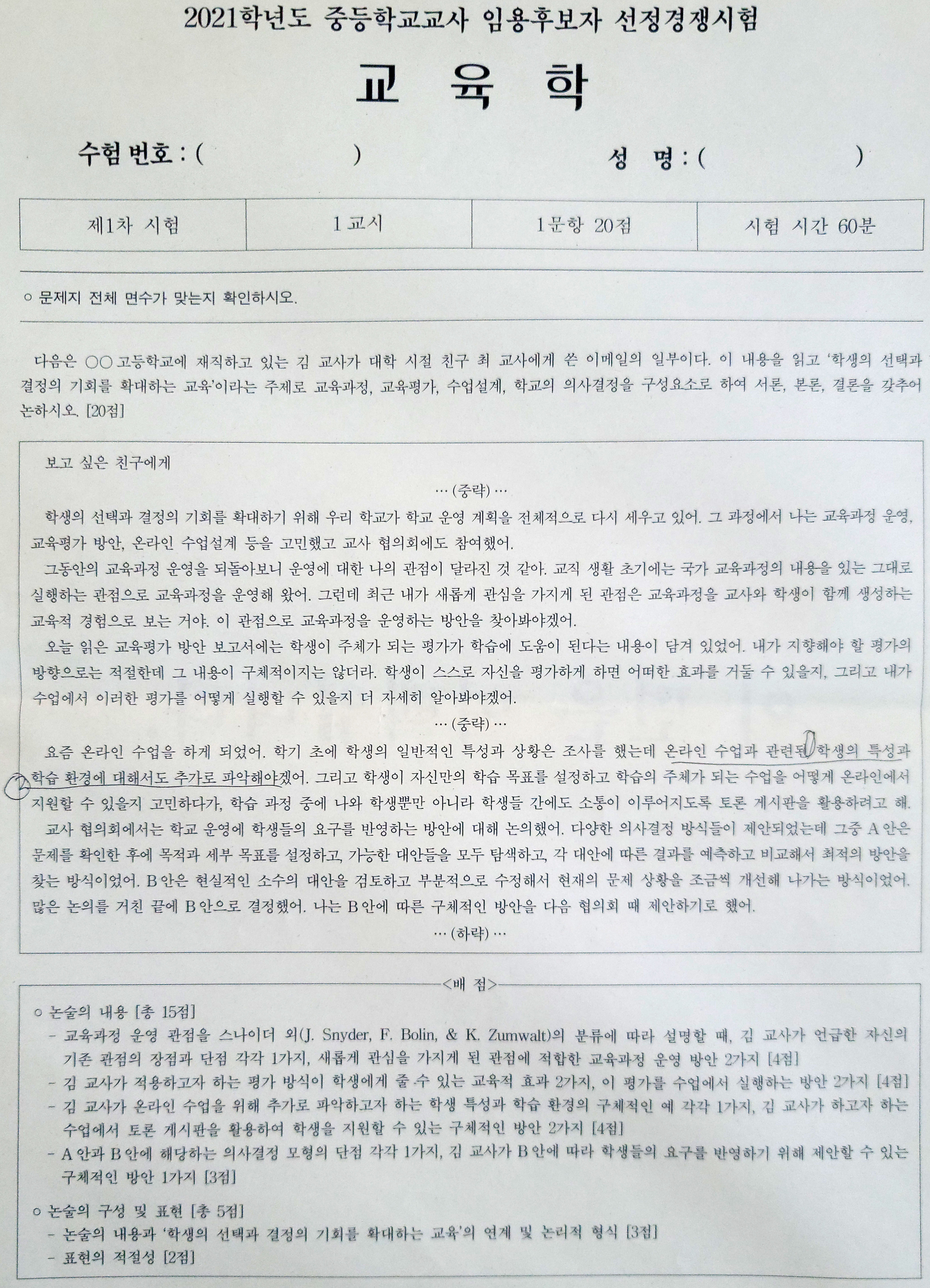 2021학년도 중등학교 교사 임용후보자 선정경쟁시험